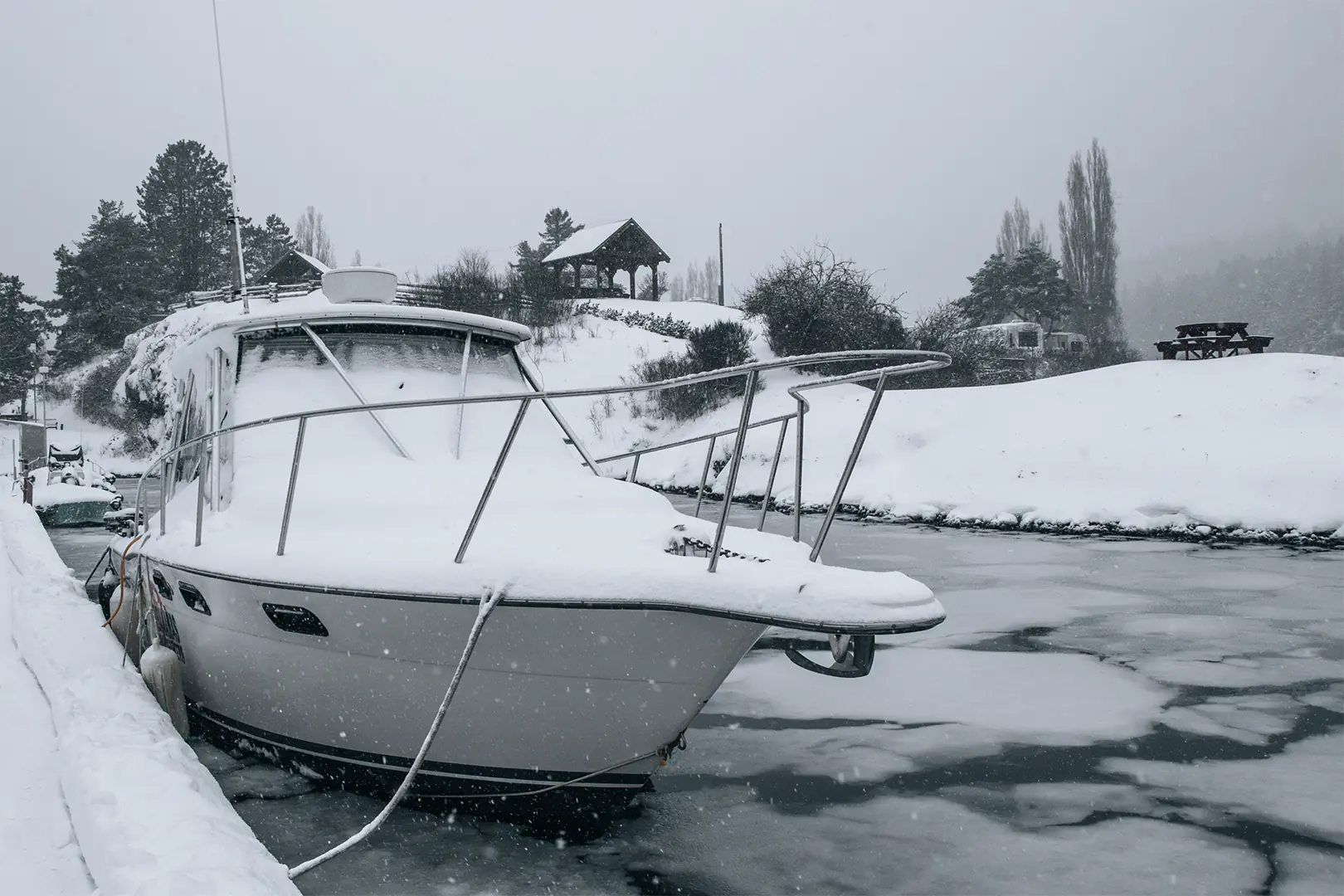 – Sørg for hyppige og grundige tilsyn, slik at regnvann, snø og is ikke samler seg i båten. Husk å lukke alle sjøventiler, og tøm alle tanker og rør som kan fryse om bord. I tillegg kan det være lurt å helle frostvæske i toalett og septik.
