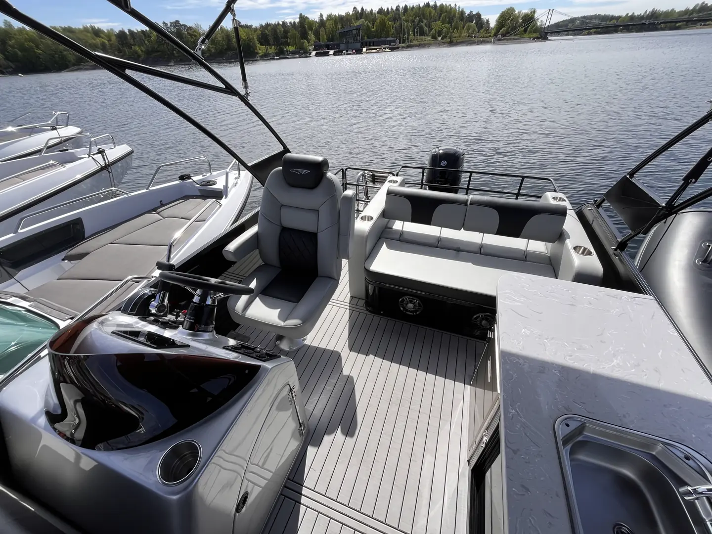 – Med pontongbåt får du mye plass for pengene og lengden. Denne båten på 22 fot er for eksempel godkjent for tolv personer og har veldig mange bruksområder, sier Barnardo.