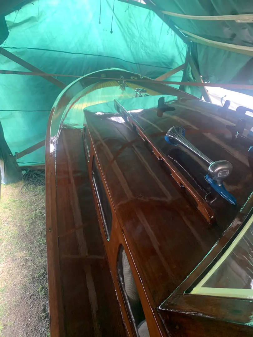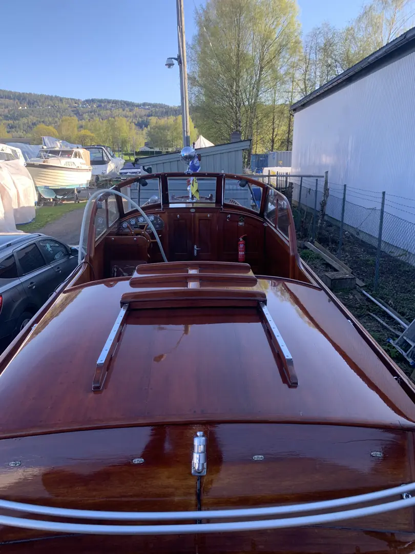 I en hage i Drammen sto en mahognibåt under presenning i mange år. Linjene var fortsatt elegante, selv om tiden hadde satt sine spor. Da Espen Olsen først hørte om båten gjennom bekjente i trebåtmiljøet rundt 2019–2020, forsto han raskt at dette ikke var en hvilken som helst trebåt.