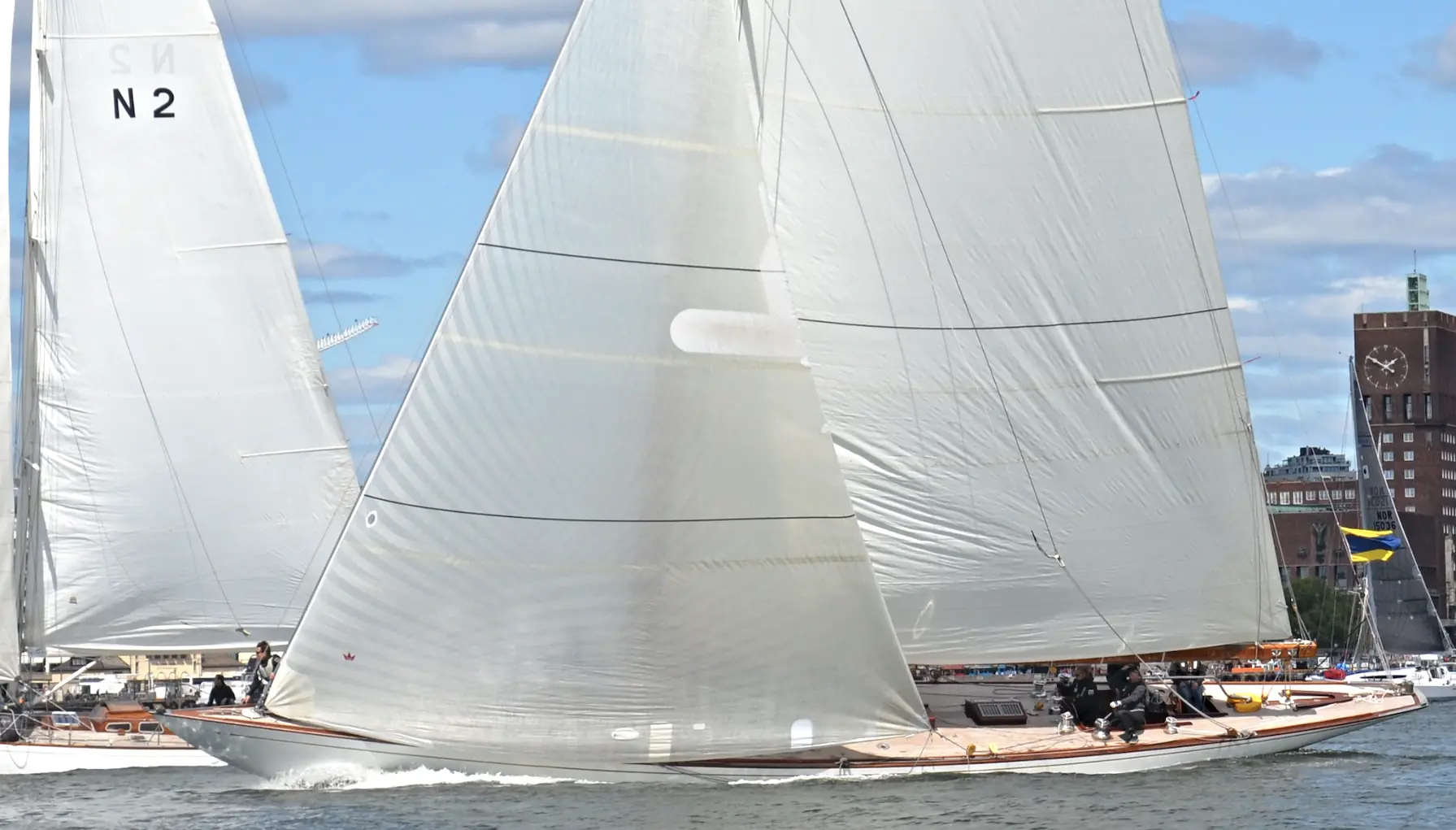 − Vi seiler i klassen med blant annet Knarrer, så dette er jo to forskjellige verdener. Ved mye vind, start ved lunsjtider og med runding rundt Medfjordbåen er vi ofte kommet veldig tidlig inn til Horten i de årene seilasen gikk dit. Rekorden er på kun seks timer fra Oslo til Horten, forteller skipper Eric Svenkerud.