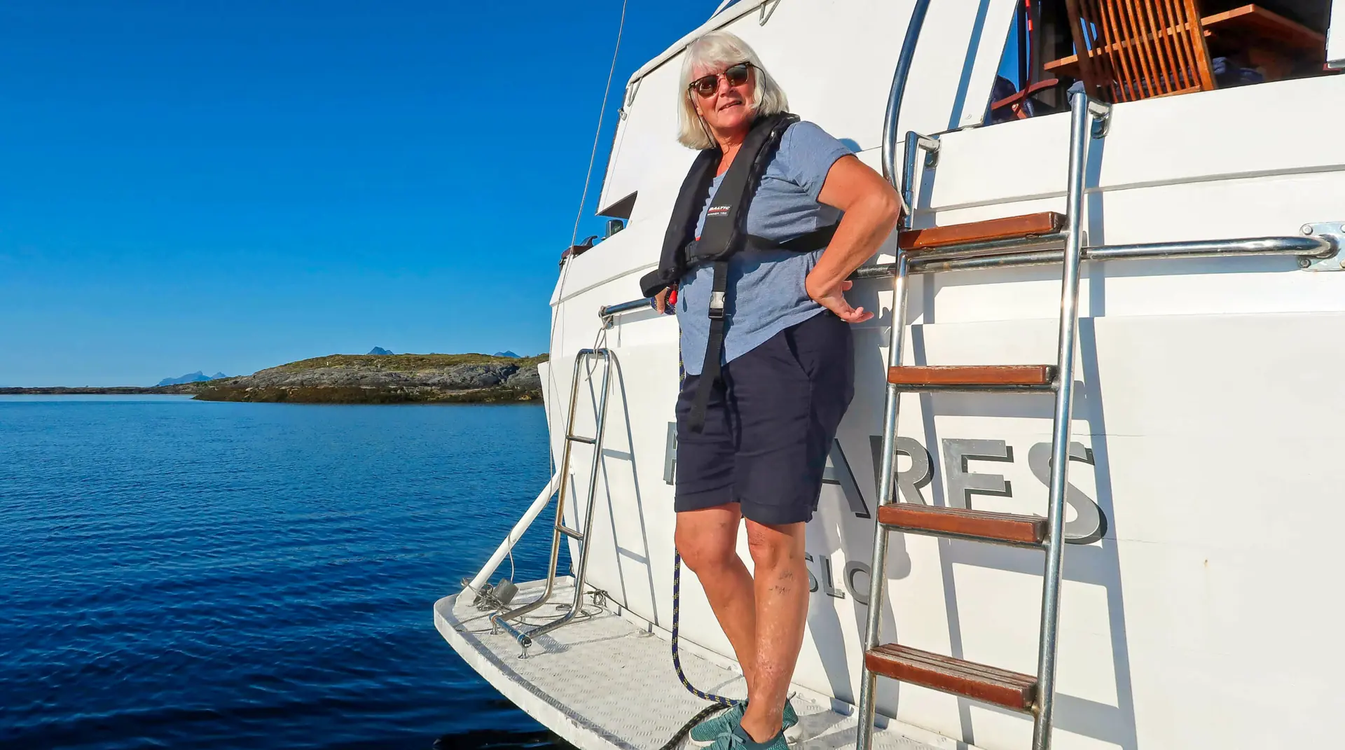 – Tid er den store innsatsfaktoren for å kunne nyte det fantastiske livet som Antares byr på om sommeren. Jeg har hatt jobber og arbeidsgivere de siste 10 årene som har gitt muligheten til å prioritere et slikt båtliv. «Noen» kroner til diesel er nødvendig, men lønningen og etter hvert pensjonen har dekket behovet. I 2018 gikk jeg av med pensjon, og har nå Antares, Norsk motorskøyteklubb og «skriverier» som heltidsbeskjeftigelse. Matros Anne har fleksible jobber og mønster på så ofte hun kan – gjerne 7-8 uker i løpet av sommeren. Familie og nære venner mønstrer jevnlig på og av i havner med god offentlig kommunikasjon. Ved å leve tett sammen som vi gjør i en båt, gir det en ekstra dimensjon til kontakten med våre nærmeste. Når værmeldingen indikerer uvær, kan gjester og mannskap mønstre av. Skippern kan da glede seg over mestringen av båten helt alene – i havn eller på havet, fortsetter han.