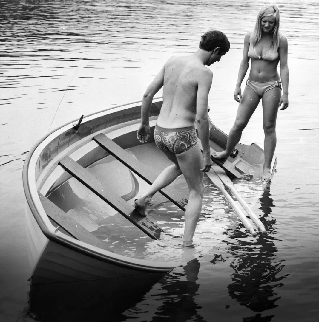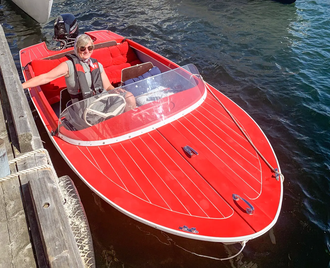 – Vi var fire søsken, to jenter og to gutter, alle lærte å kjøre båt. Hver sommer måtte vi være fotomodeller, hele familien. En del av betalinga var at vi fikk lov å kjøre demobåtene, forteller Per Tomas.