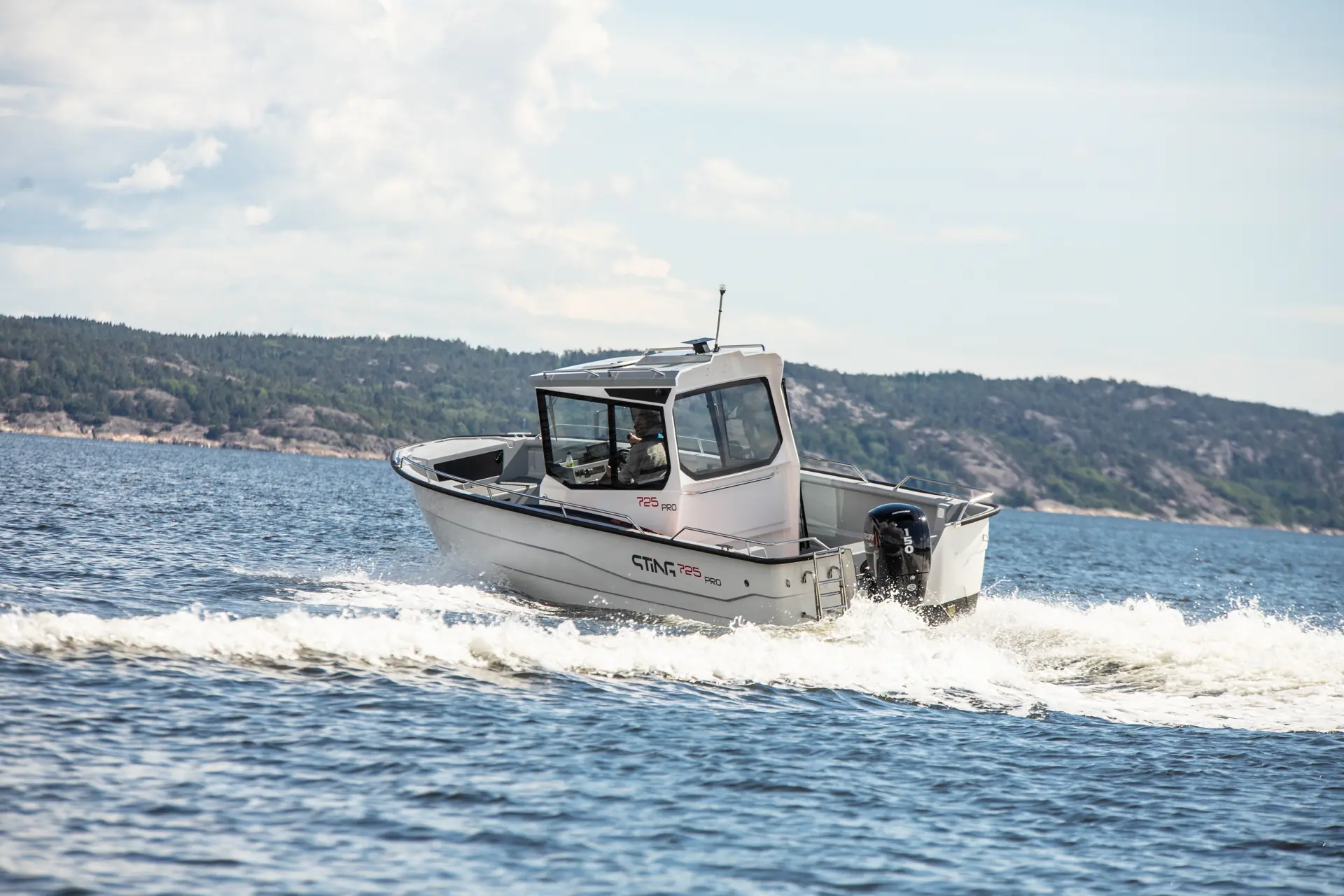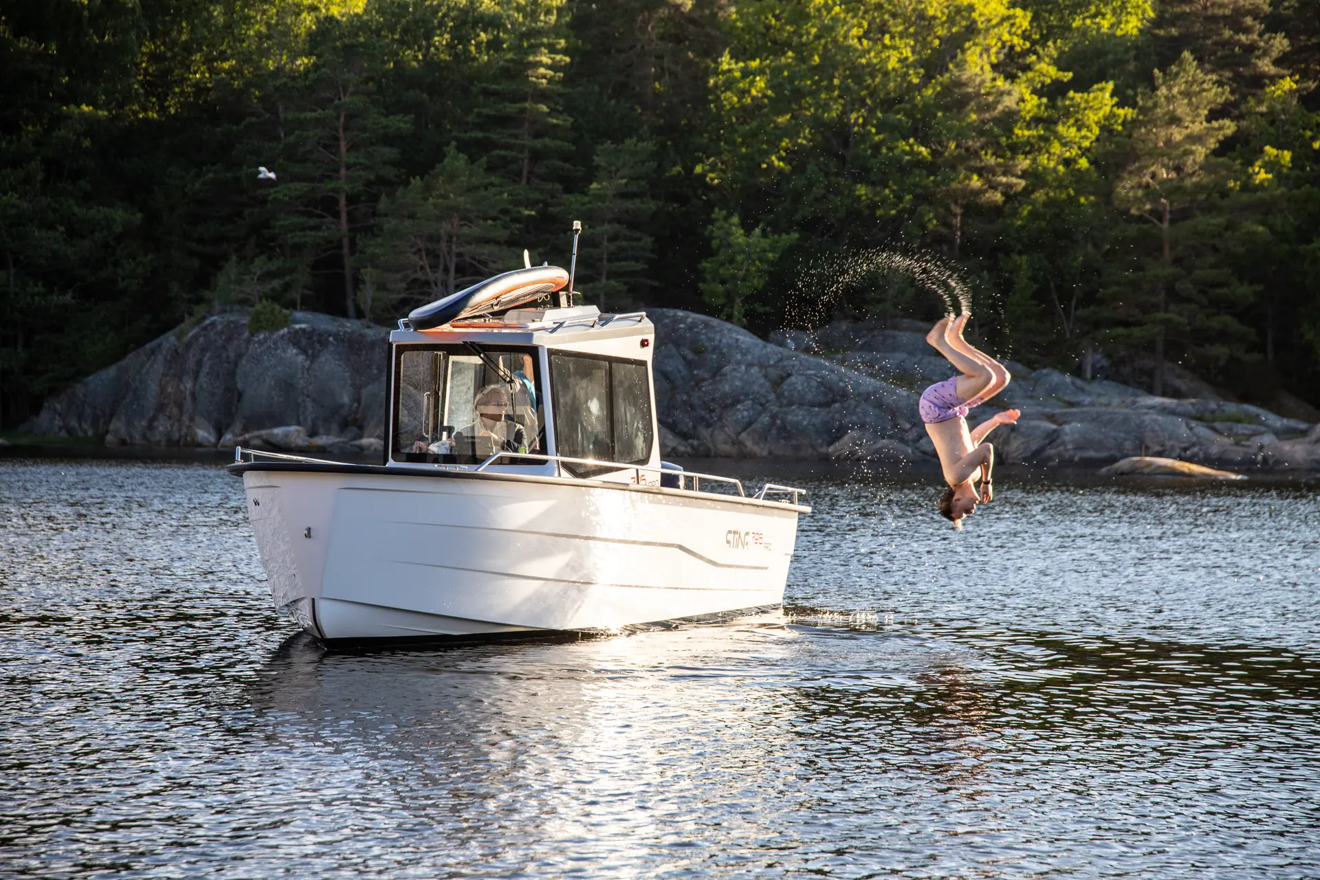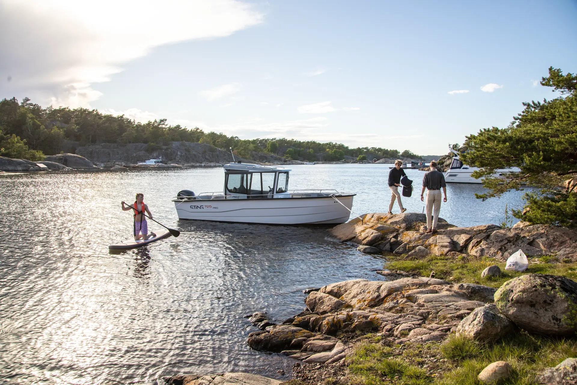 Med plenty av dørkplass rundt hele hytta – og om så skulle være på styrhustaket, er det lett å tenke seg Sting 725 Pro Cabin XL som en plattform for opplevelser i skjærgården gjennom hele året. Her er det lite å vedlikeholde – og få detaljer å være «redd for». På vei ut til en naturhavn blåses ståbrettet opp fra båten. Vel fremme er det enkelt å kaste dreggen og gli inntil en perfekt klippe.
