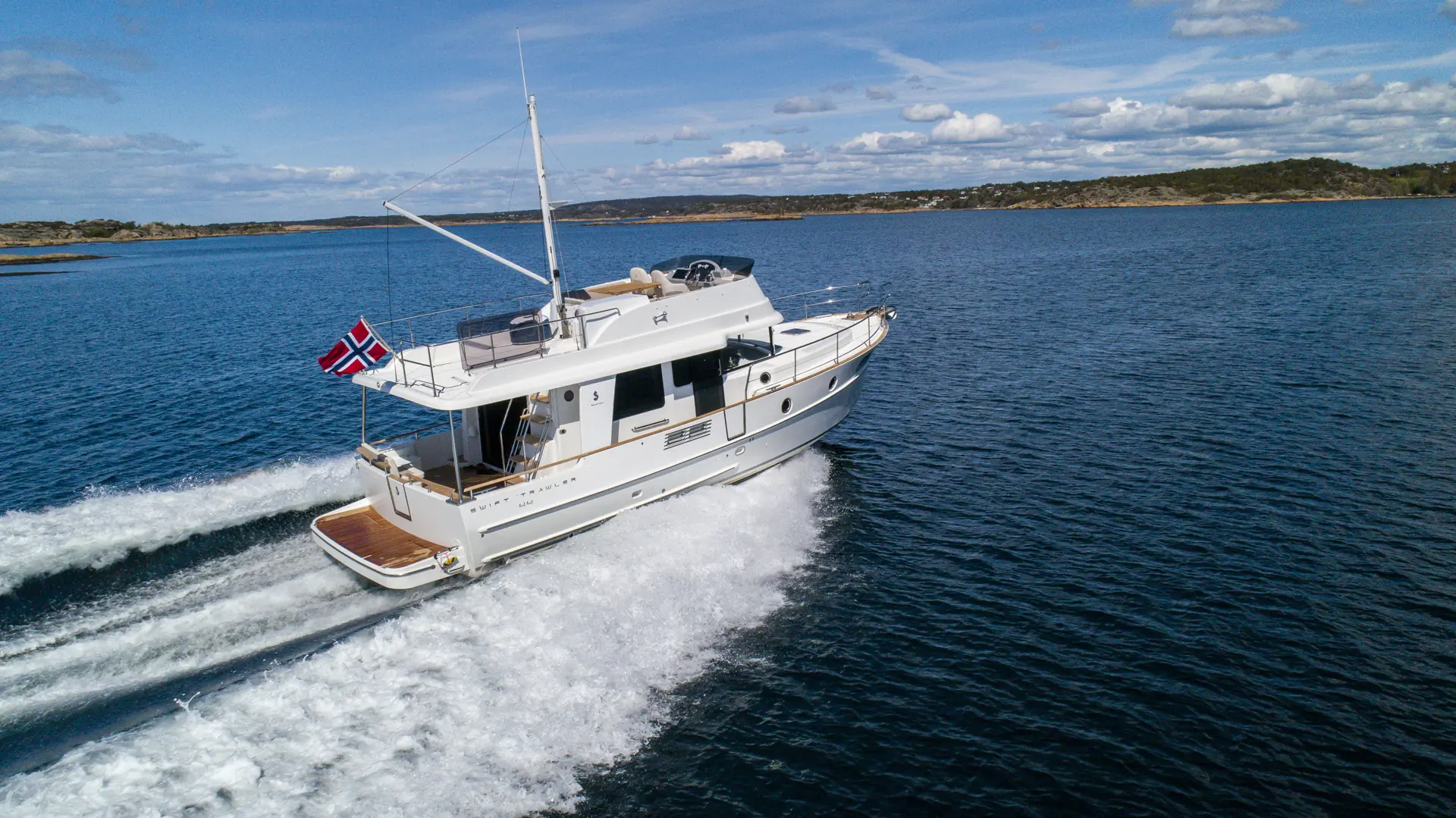 Derfra begynner naturligvis båten å grave hekksjø. Under overfarten fra Tønsberg til Fredrikstad blåste det 12 sekundmeter og sjøen traff på siden. Tross dette klarte vi fint å holde god stabilitet i 13 knop med autopiloten på. Skroget oppleves som både lettdrevet og mykt i sjøen – ut ifra prisbildet på båten – som ligger under en del andre trawlere og konkurrenter. Drivstoffkapasiteten er romslig, med 1 400 liter – som i 8 knop gir en teoretisk rekkevidde på cirka 800 nautiske mil.
