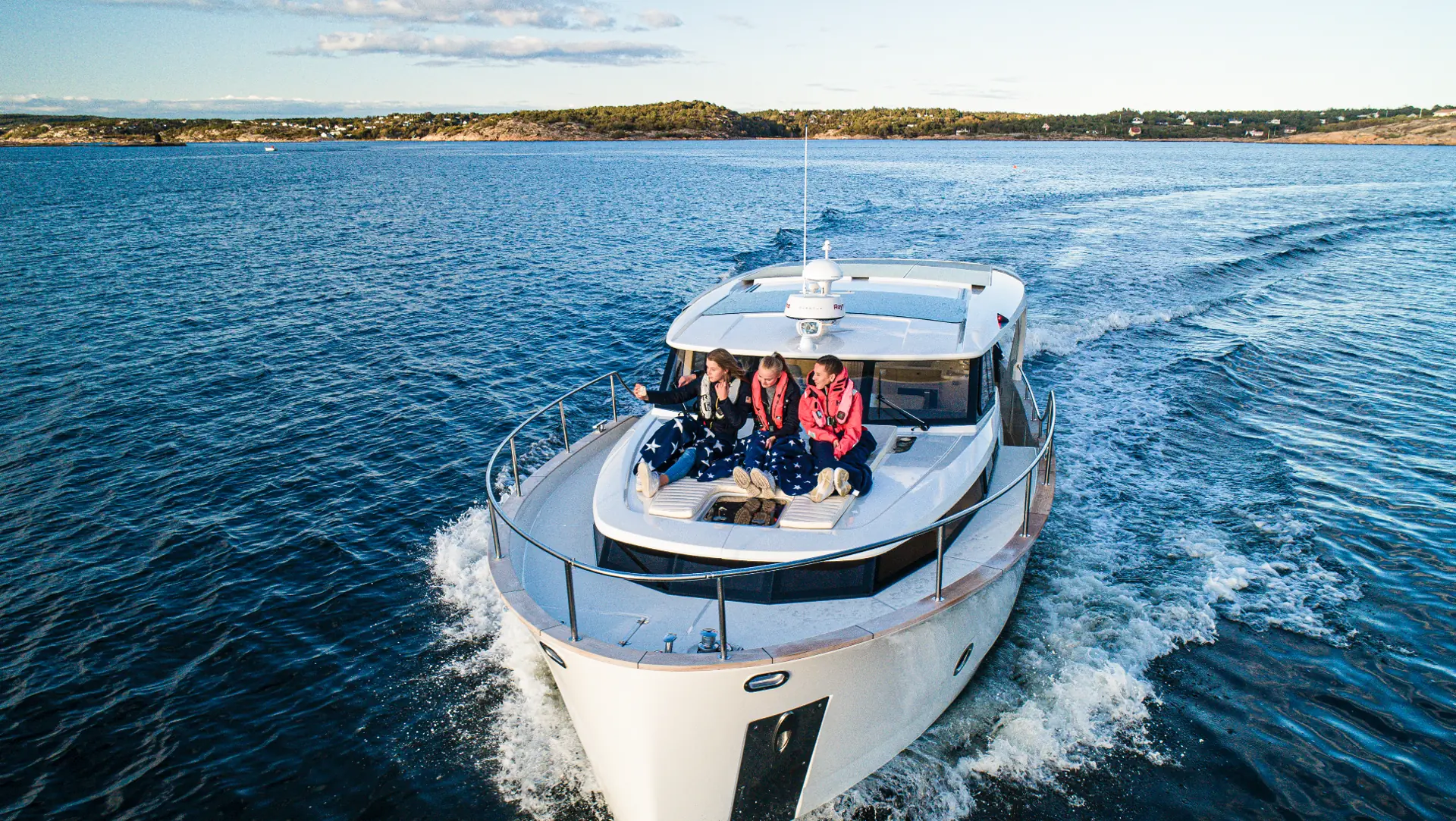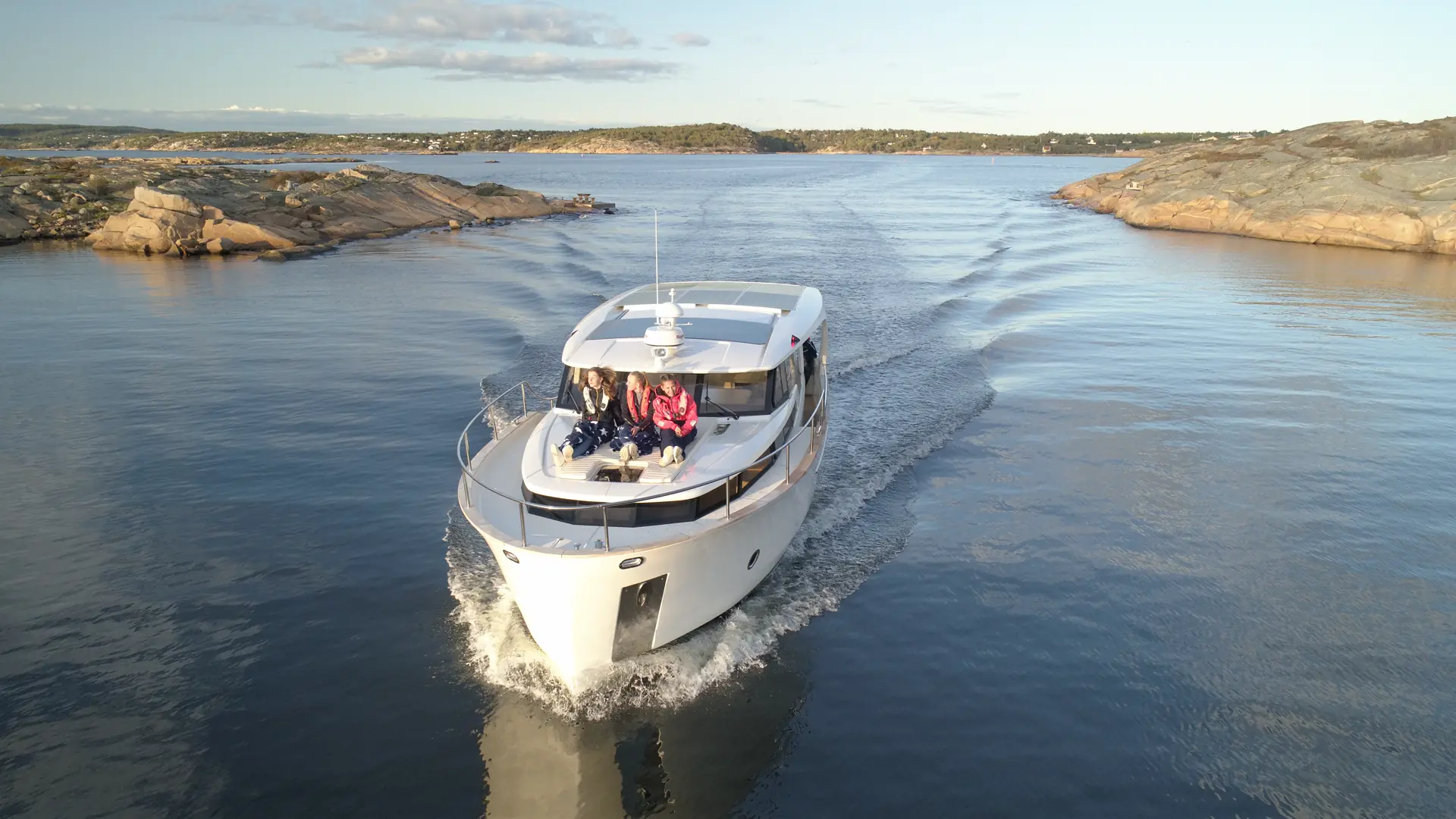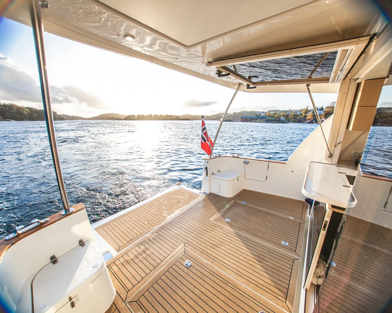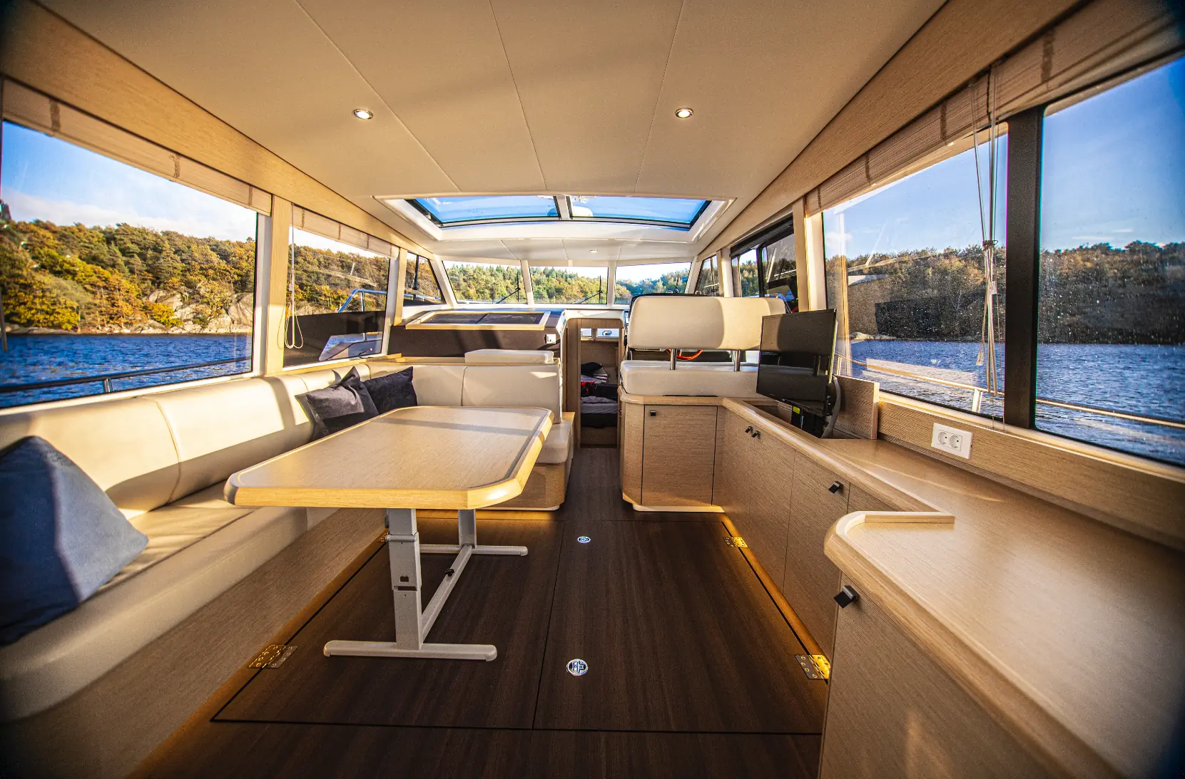 Med de store panoramavinduene og den elektrisk takluken, er dette en åpen båt for lange dager i skjærgården.