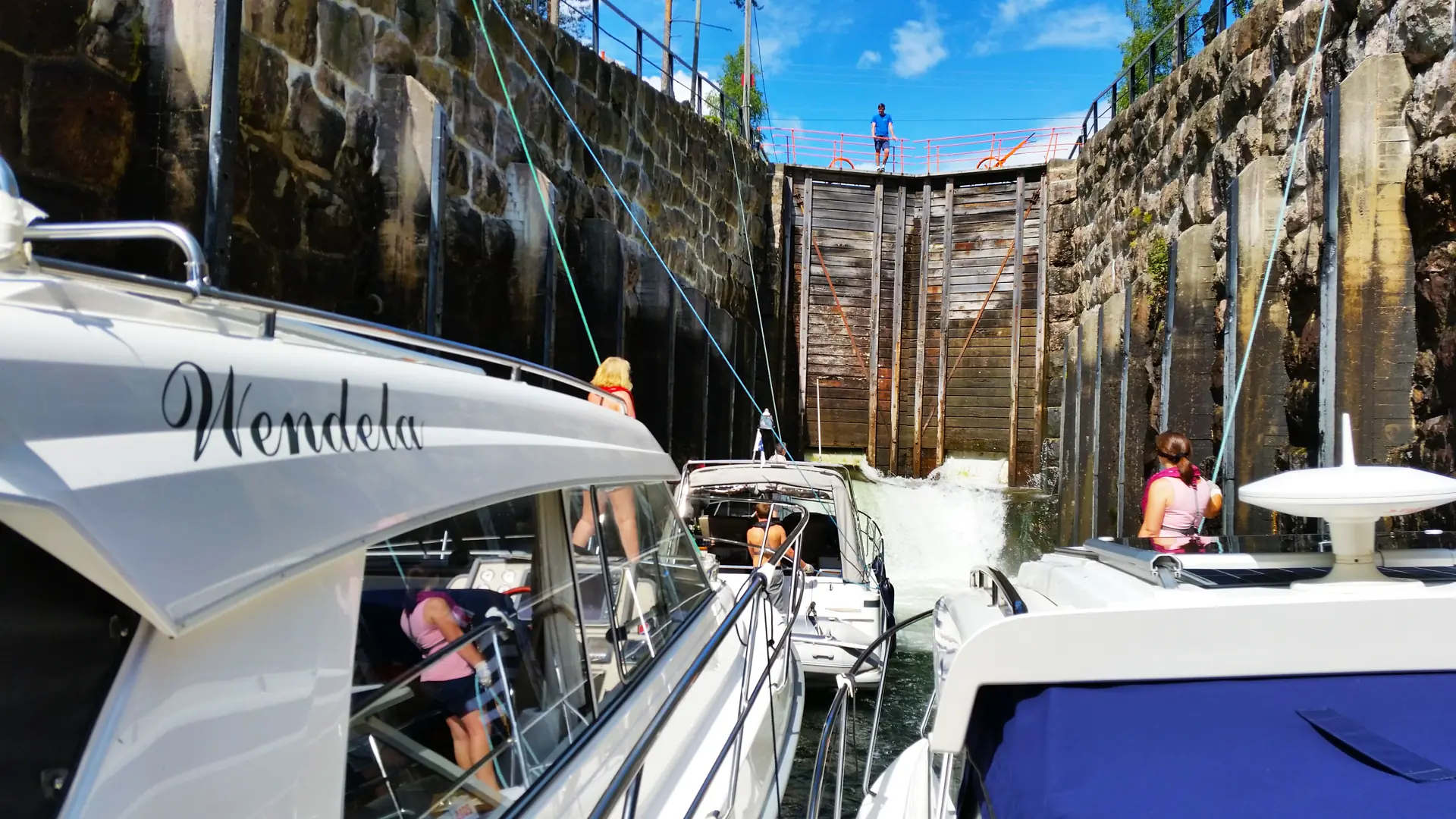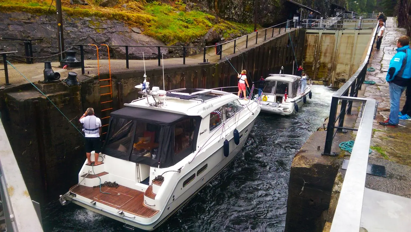 Telemarkskanalen bør alle ta, uansett båtstørrelse – det er en båtopplevelse, men også naturopplevelser som virkelig griper en. Man møter bare hyggelige ansatte oppover, som hjelper deg med det du måtte trenge. Det er bare å prate med slusevaktene om ditt behov, så justerer de trykket i slusene etter det. La gjerne de som er unge og spreke ligge først i slusen, for der er det ofte tyngst (oppover) og de som ikke er så sterke ligge bak. Eller spør om hjelp. Slusing nedover krever ingen krefter i det hele tatt, det er bare en lek.