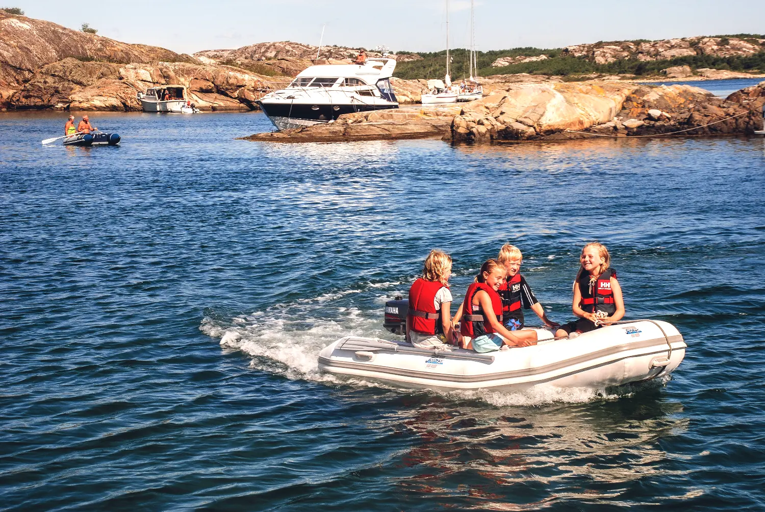 Alle barn har også lov til å kjøre egen båt – og hvem vil ikke være skipper på egen skute? For de minste koster en gummibåt med 2,5 eller 4 hestekrefter noen tusenlapper, som er enkel å slepe med på dags- eller ferietur.
