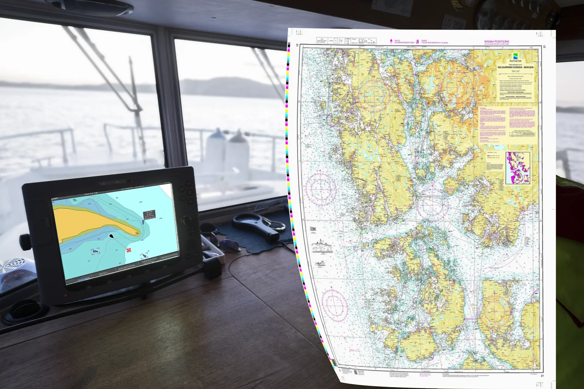 Et papirkart gir dessuten et mye bedre oversiktsbilde enn det kartplotteren gjør. Det gjør det enklere å orientere seg i landskapet, få oversikt over farvannet. En annen sak er at det gir en god følelse å jobbe på «gamlemåten» med papirkart. Dersom du gjør det til en vane å bruke papirkart i tillegg til plotter, vil du også være fortrolig med å navigere etter sjøkart om elektronikken svikter. Utvalget av papirkart er stort, men dessverre viser statistikk at færre og færre har dem i båten. Det synes vi er synd.