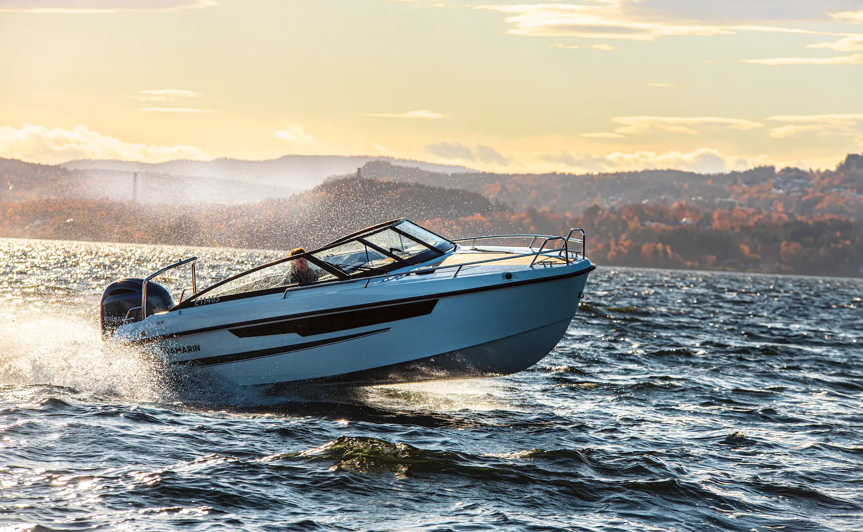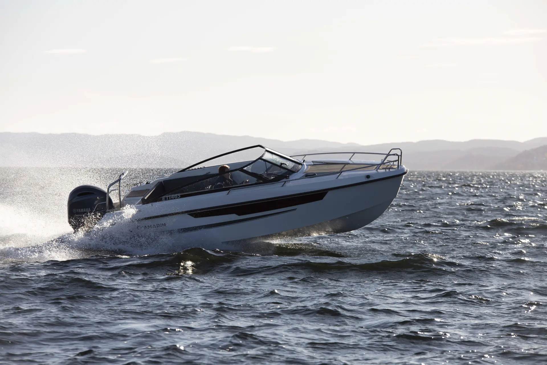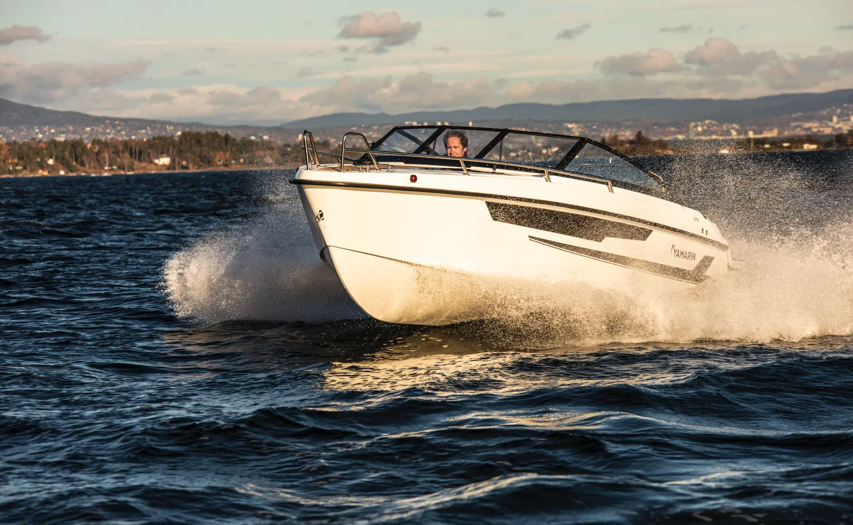 Båten har hydraulisk styring som standard. Takket være skrogets utforming med negative spant oppleves båten som stabil og forutsigbar slik en familiebåt skal være.