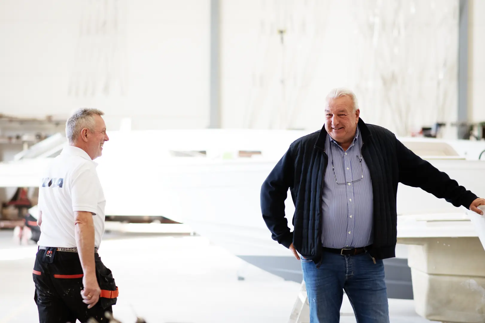 En spilvegg med LED-lys er et lekkert skille inn mot sittegruppen, omtrent i senter av båten. Her er store, sotete vinduer slik at alle kan følge med på naturen utenfor. Bak førerposisjon på styrbord side går en privat trapp ned til masterlugar som er midtskips.