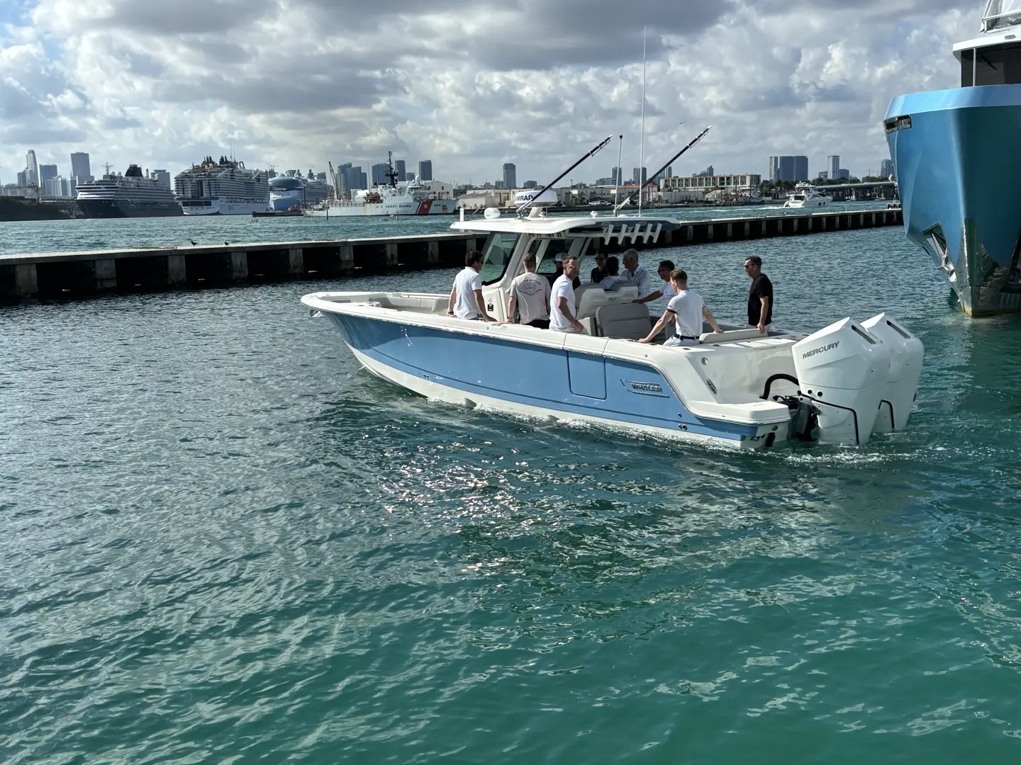 Det er Sverre Kragstad AS som importerer Boston Whaler i Norge, og representant Marius Kragstad har allerede vært med på avdukingen i Miami og prøvekjøring av 330 Outrage: