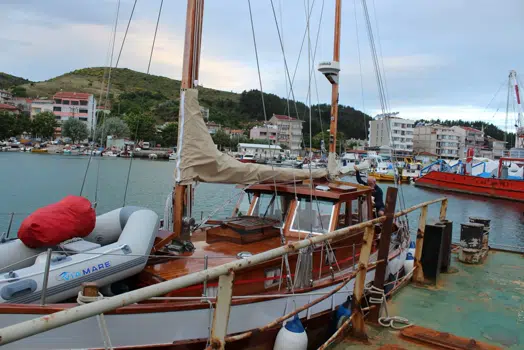 Ved Brattestø Havn & Båtservice er det uteservering og kiosk.