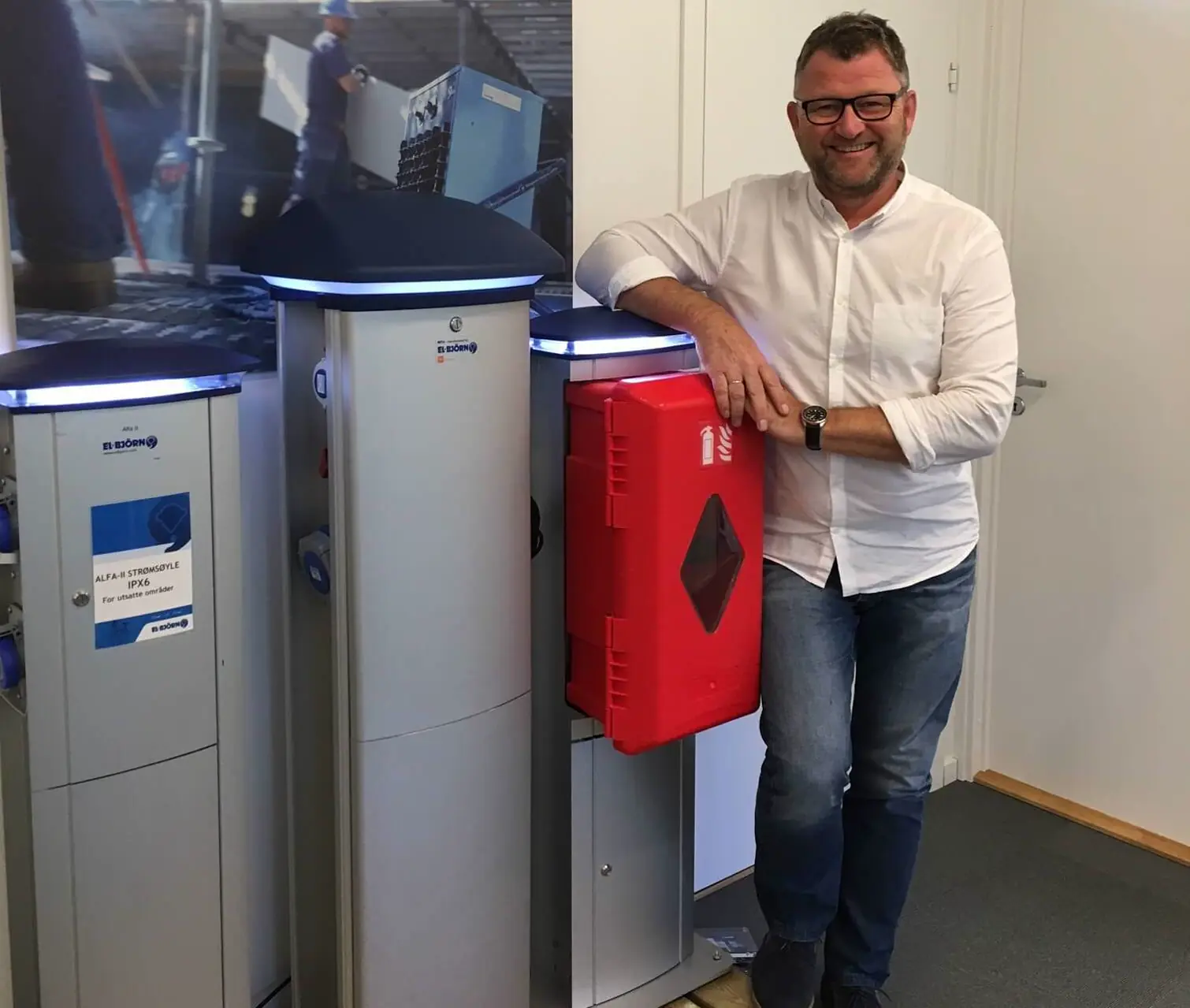 Vi skal montere strømsøyler fra El-Bjørn på vår testbrygge, levert i samarbeid med Norske Bryggeprodusenters Forening, og velger den velkjente Alfa II-modellen. Dette erstattet forgjengeren fra 2006, og det er totalt levert 8 600 søyler. Alfa II har alle elektriske koblinger høyt oppe, og tilpasses med antall uttak og annet ekstrautstyr som vannkran og slangeholder, strømmålere, brannskap og liknende etter behov.