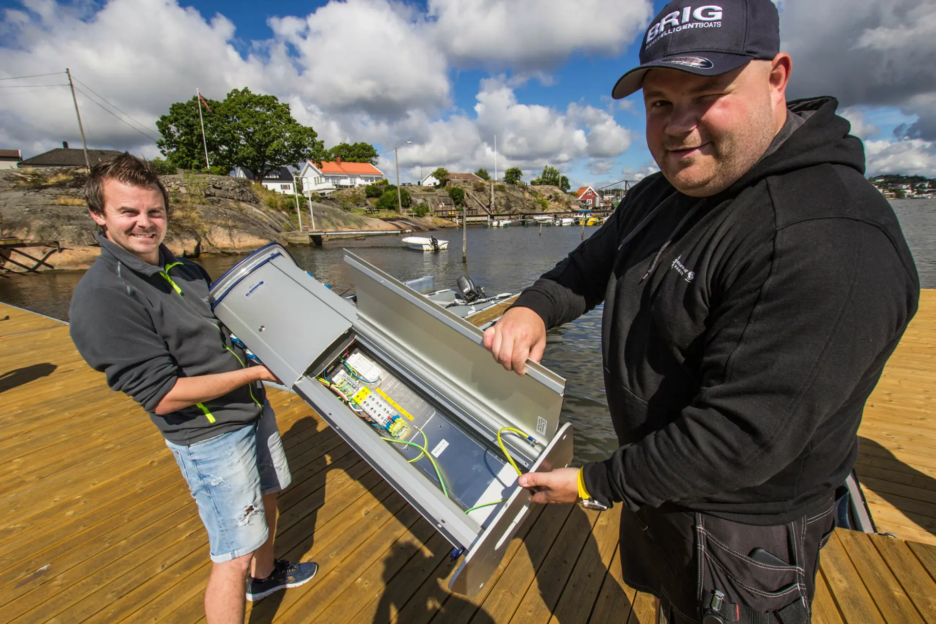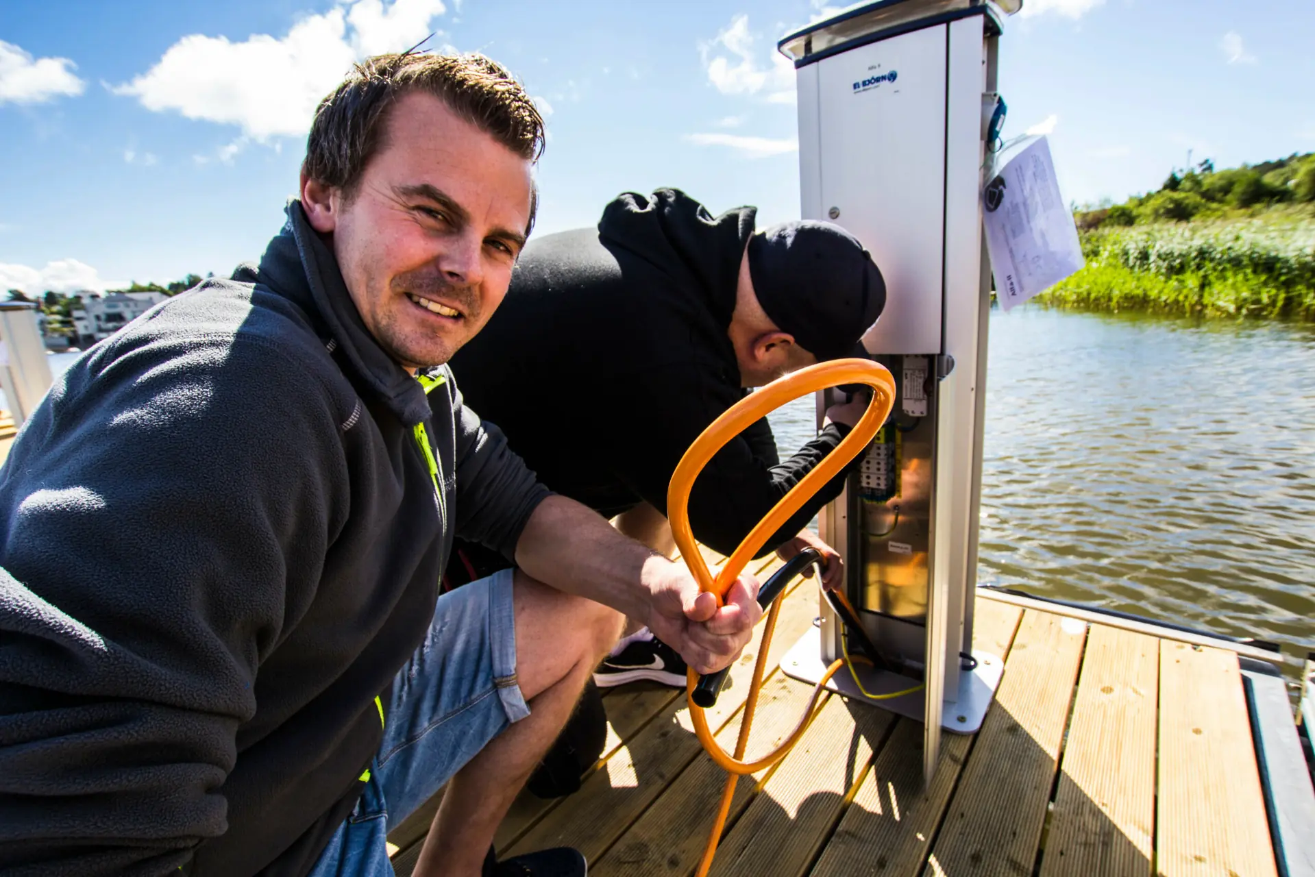 Selve monteringen og tilkoblingen skal Installatøren Gruppen, som har avdelinger over hele Østlandet, hjelpe oss med. Serviceleder Kristian Antonsen er nemlig ikke helt fremmed for slike bryggeanlegg. Foruten mindre oppdrag har kollegaene hans nesten nylig ferdigstilt en av Norges største marinaer, Skjebergskilen Marina med sine cirka 1 300 plasser, og i vinter venter arbeid på nye Fredrikstad Motorbåtforening.