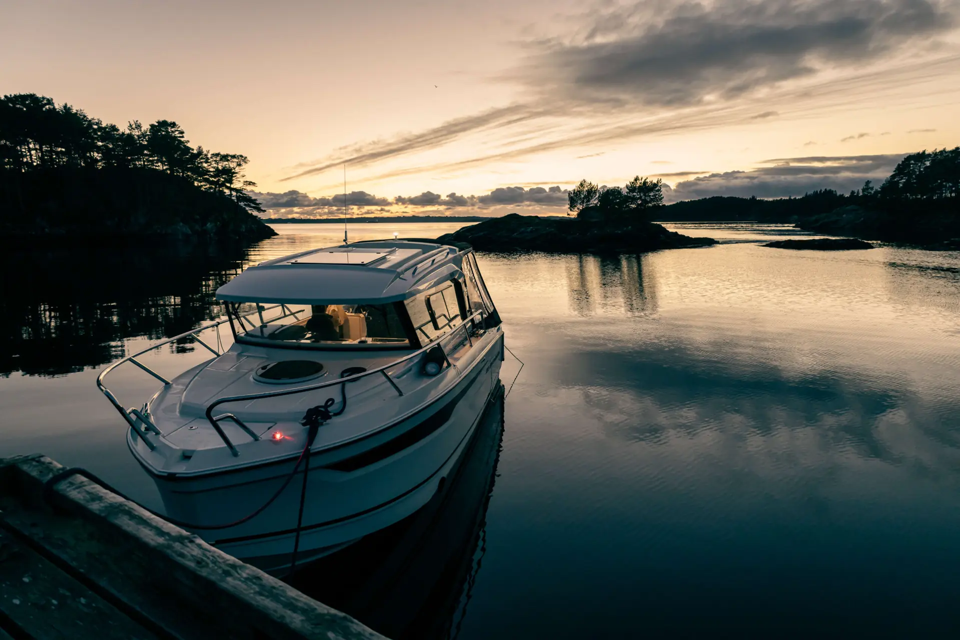 Det kribler i magen og jeg føler meg allerede mer oppstemt. Tanken på at et lite hverdagseventyr venter gleder meg. Jeg skal nemlig overnatte i båten min, en Askeladden P76 Weekend, til neste morgen, og så dra rett på jobb. Det er avtalt med Line på forhånd. Alt er ok, men jeg føler likevel at jeg gjør noe litt ulovlig. Bare dra ut med båten og overnatte en helt vanlig hverdag? Bryte hverdagsrutinene på den måten? Går det virkelig an?