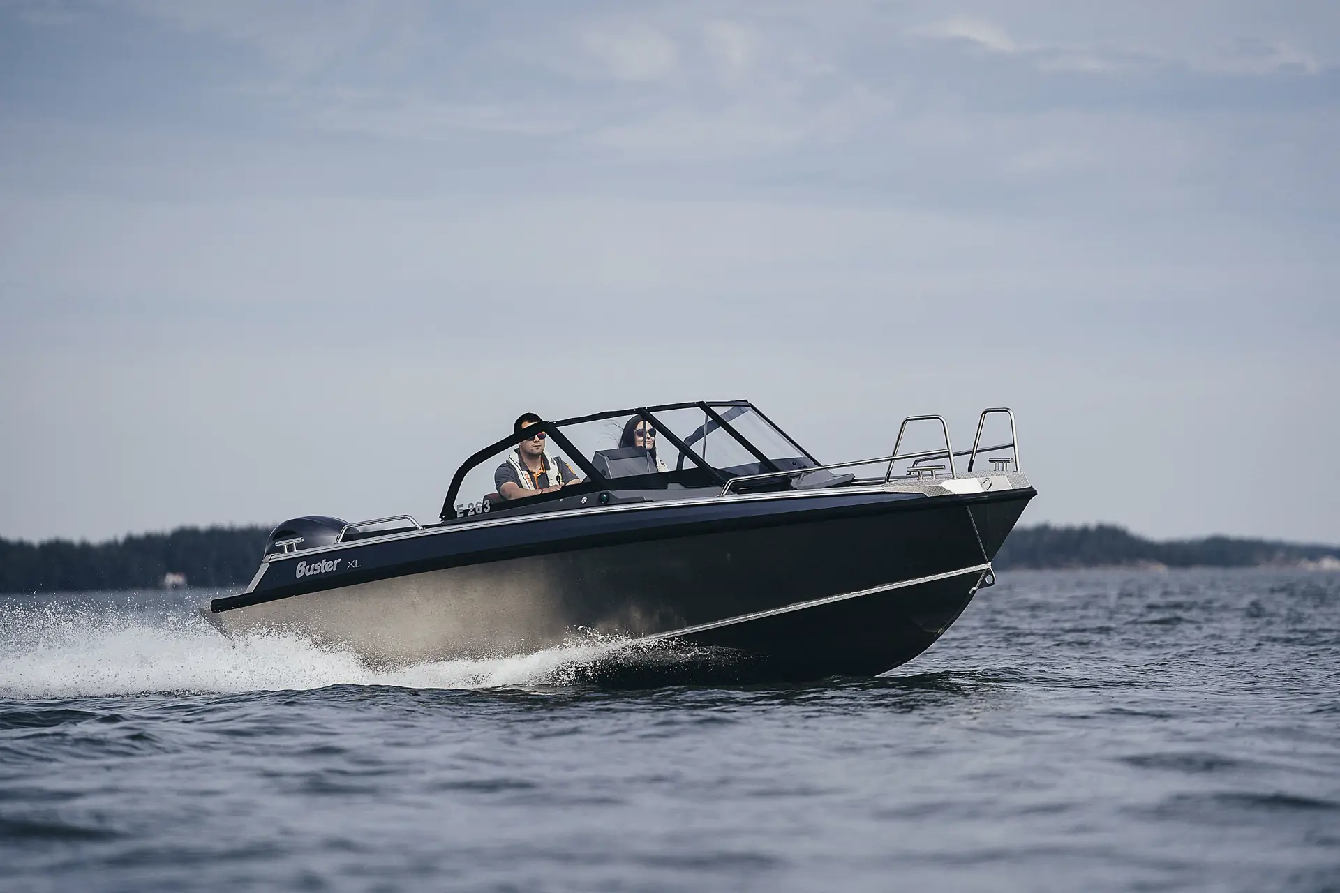 Buster XXL er designet for åtte personer og med 150 hk. på hekken skal toppfarten være på 43 knop. Også her finnes Buster Q 10-tommer på standardutstyrslista, og lasteevnen er økt med 240 kilo mer fra tidligere. For passasjerene finnes en stor U-sofa og i sittebrønnen er plassen blitt større takket være at bredden har økt med tretti centimeter.