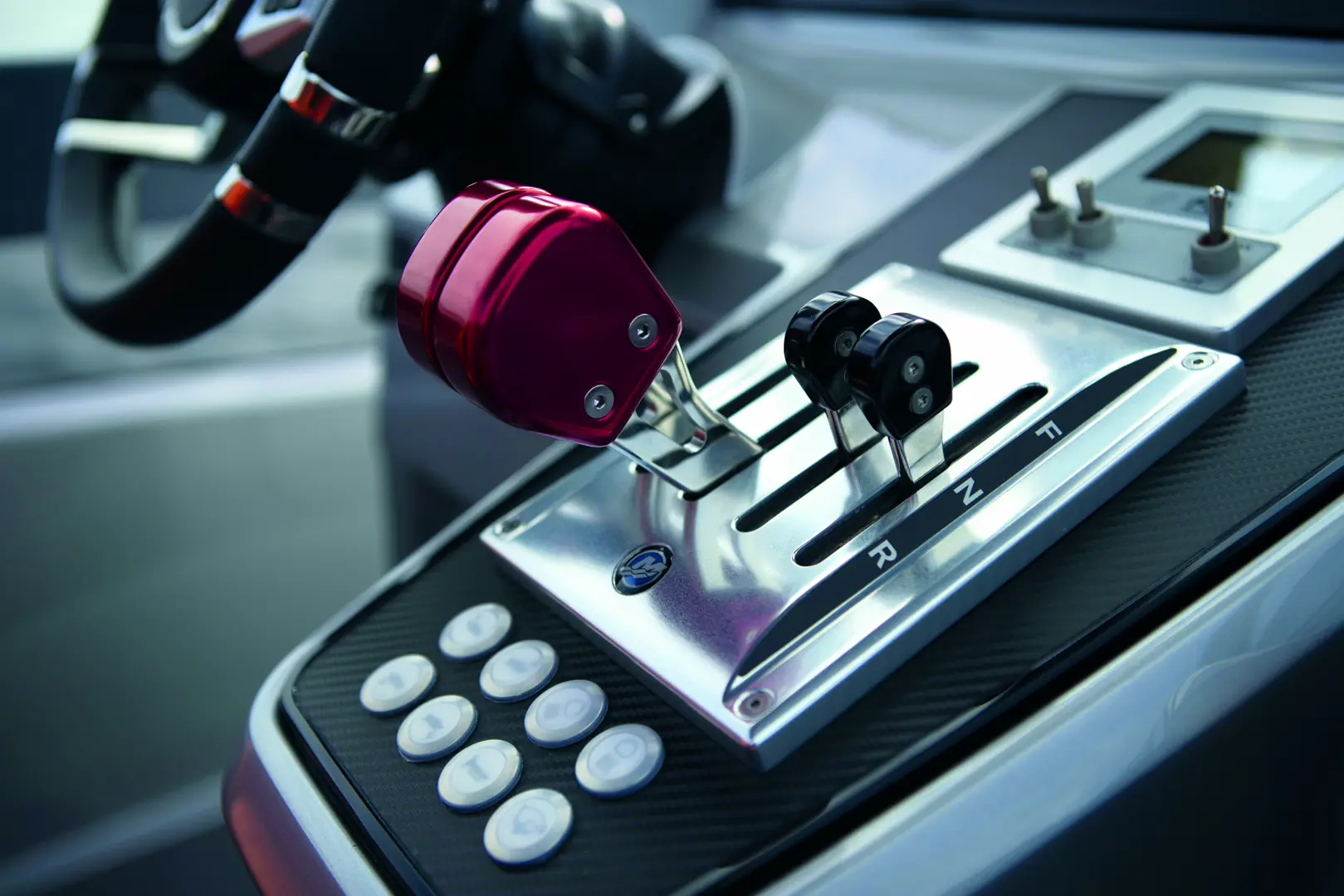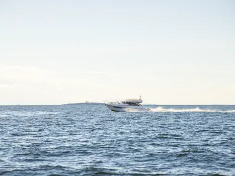 Båten er godt utstyrt med blant annet VHF, doble 16-tommers Simrad-plottere med full motorintegrasjon og styring av båtens systemer, radar og AIS. I tillegg har den omfattende lyssetting fra Lumishore – både innvendig, utvendig og under vann – samt dempede og elektrisk justerbare førerstoler.