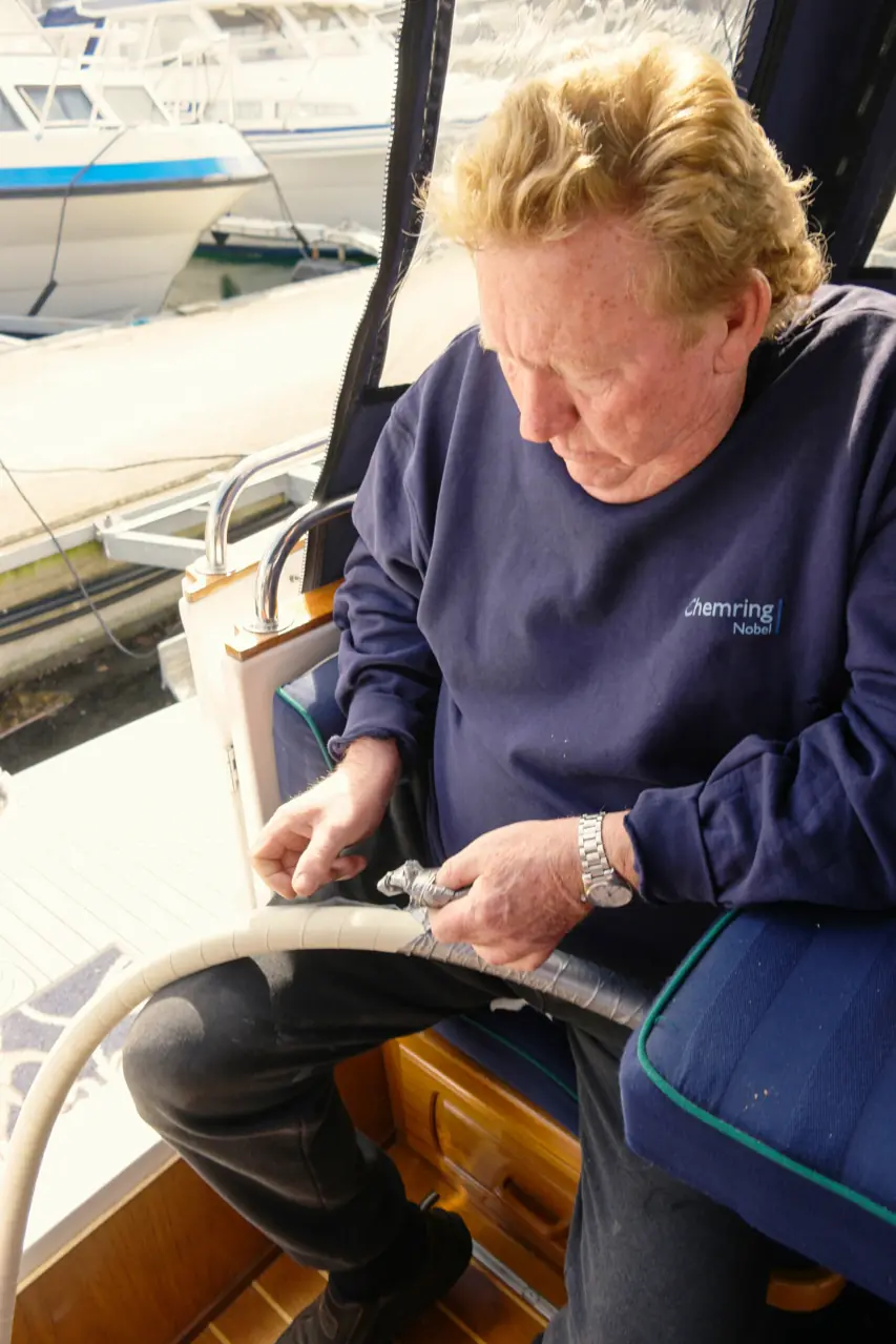 Det lønner seg å være to personer når du skal bytte septikslange. Det kan være krevende å få tredd slangen gjennom skarpe svinger fra toalettet og fram til septiktanken. Fra båtbyggerens side er dette svært enkelt da overbygg og slike ting ikke er på plass og dermed faller alt lettere på plass. Et godt råd når du først er i sving er å spyle opp lufteslangen som går fra septiktanken og ut i borde. Den kan også tette seg og vil da lage mye krøll, noe flere har erfaring med i selveste fellesferien. Her finnes det et karbonfilter du kan påmontere for å hindre uønsket lukt ut fra septiktanken. Prislapp for denne er i underkant av 900 kroner.