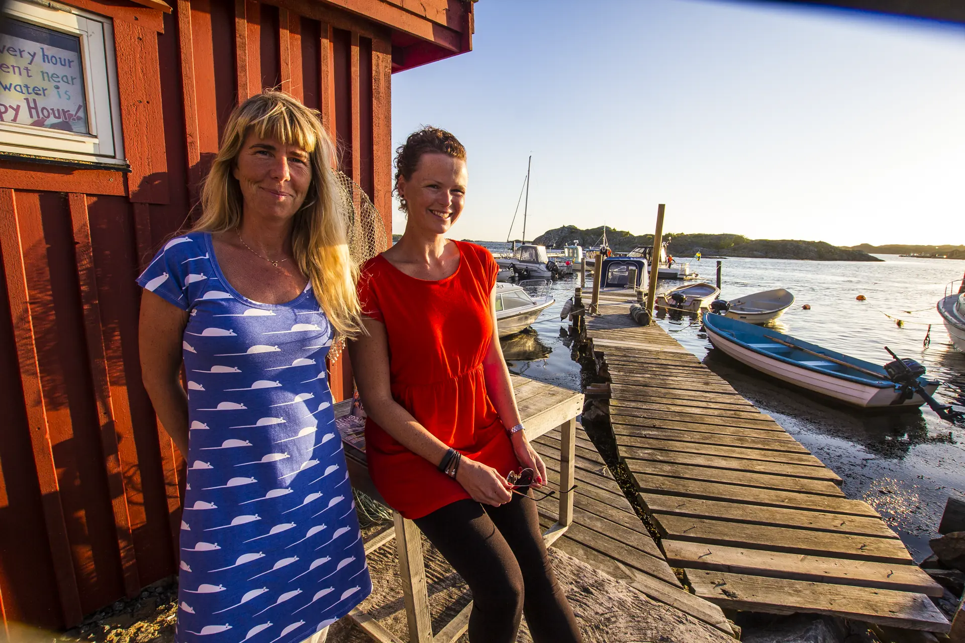 Carin har ingen familietilknytning til Brännö, og flyttet hit for elleve år siden da hun ønsket mer landlige omgivelser, mens Jenny har vært her hver sommer siden barnsben, og flyttet hit for ti år siden.