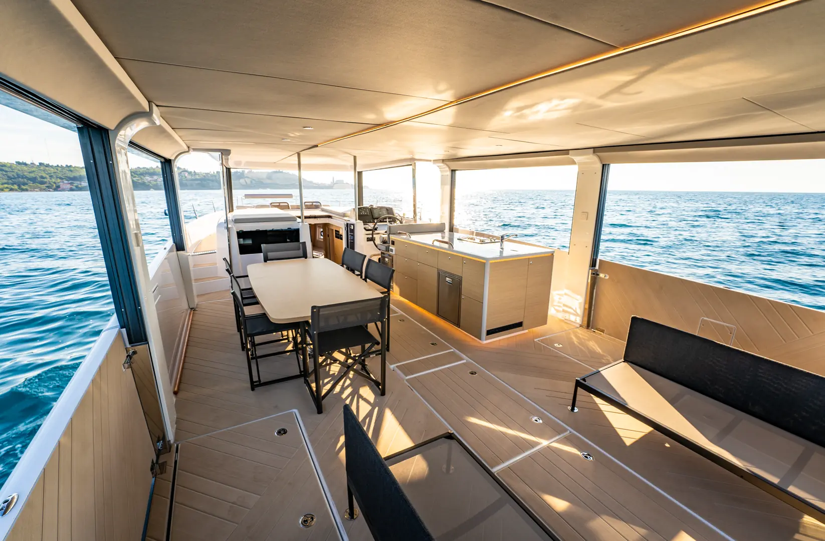 Dette skiller Sea Loft 480 fra klassiske fritidsbåter og plasserer den i en kategori som ligger nærmere flytende arkitektur enn tradisjonell båtbruk.