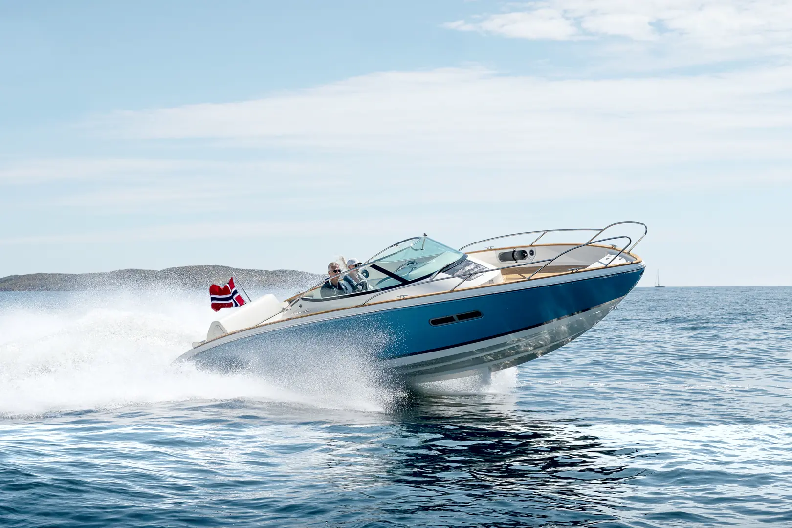 Den er perfekt for å cruise rundt i skjærgården med, drive vannsport, ankre opp i en naturhavn eller som weekendcruiser. Under dekk har båten to faste sengeplasser og eget toalett med elektrisk spyling.
