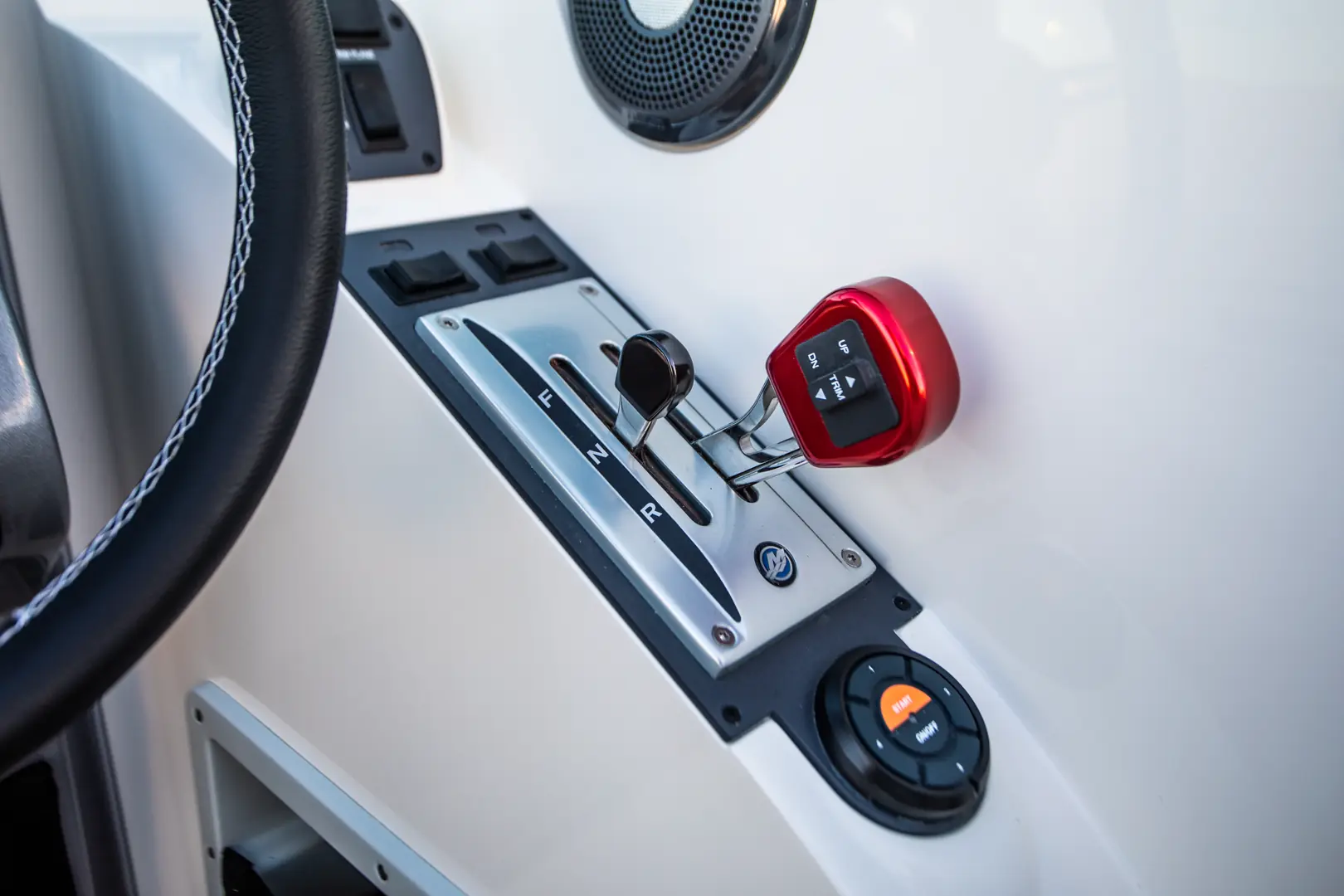 – Dessuten er båten enkel å bruke. Fra du går om bord og begynner å ta av havnepresenningen tar det maks ti minutter før du er på sjøen. Brukerterskelen er veldig lav. T28 er forutsigbar og lett å håndtere, og bevegeligheten gjennom hele båten er svært god. Med minste motorvalg, en 3,0L V6 på 270 hk., gjør båten hele 44 knop på maks. Og med en dyp, tradisjonell v-bunn er den både trygg, og går mykt i sjøen. Dette er en båt du må oppleve å kjøre, forklarer Tømta.