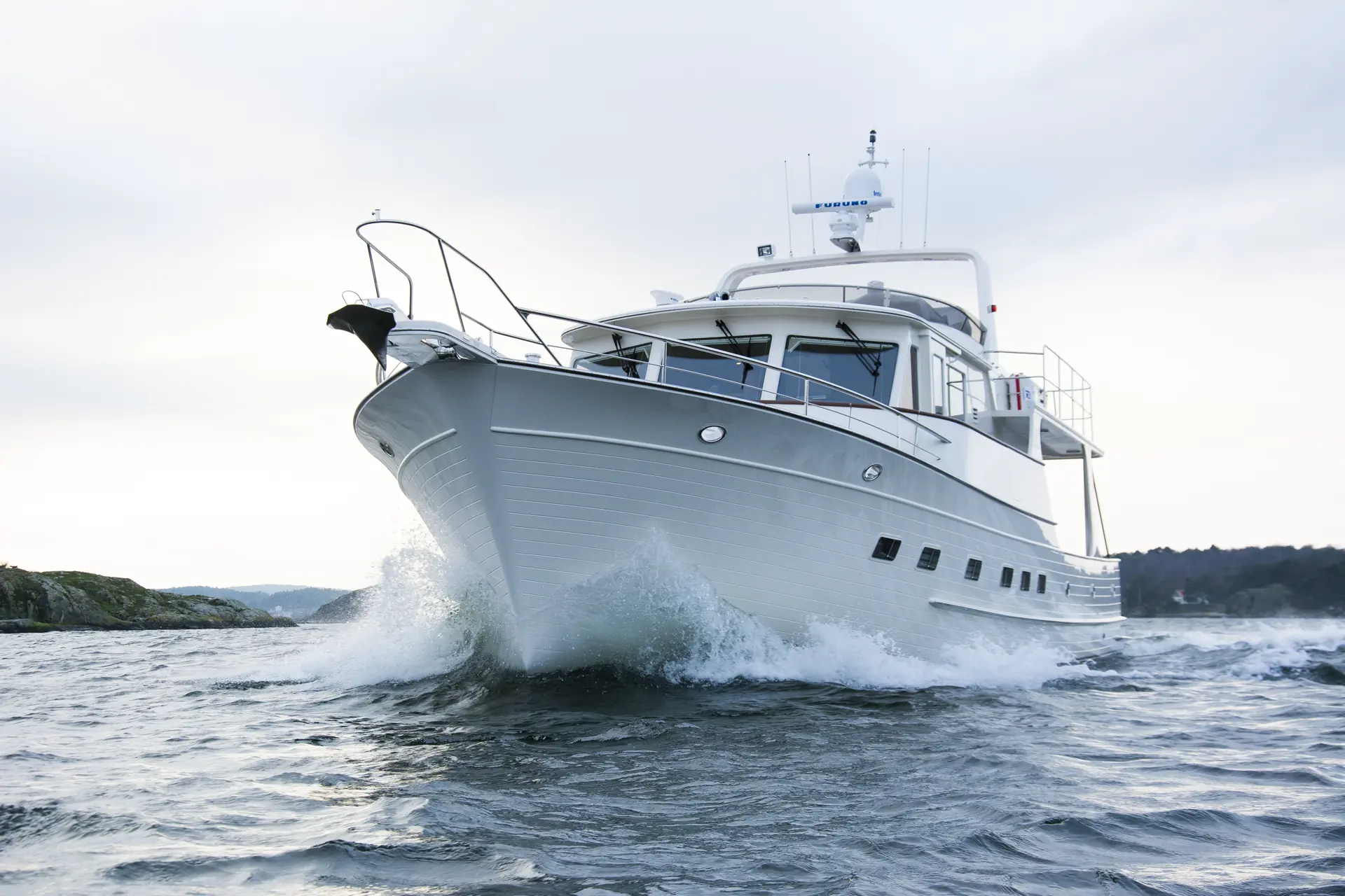 Selv om det er november, omkring ti sekundmeter frisk, kjølig vind og mørkt i luften, føles dette som helt ideelle forhold å utforske Flemings 58-foter på. Dette er en båt for det gode liv om bord, og følelsen forsterkes ytterligere når temperaturmåleren utendørs kryper ned mot frysepunktet, sjøen er rufsete og kald - mens det inne er stuetemperatur. Du har kanskje sett henne på messen Båter i sjøen eller i skjærgården. For selv om - naturlig nok - Fleming ikke er noen volumbåt - går det om lag ti eksemplarer fordelt på rangen fra 55 til 78 fot i Norge, og importør Marstrand Yachts har fått et solid fotfeste i markedet.