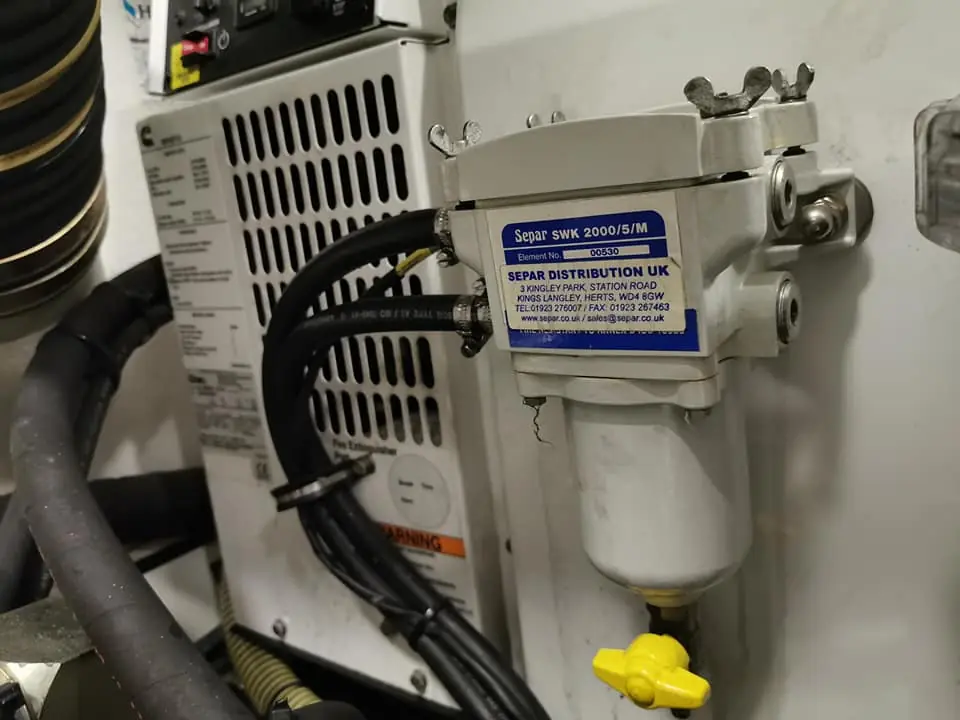 – Derimot har mange båter et forfilter, eller vannutskiller om du vil, som dieselen passerer gjennom før den går videre til motorens dieselfilter. Eldre vannutskillere har et glass i bunn med et plastratt en kan tappe fra, eller en kuleventil. Nyere båter kan også ha dette, men da oftest med et varmeskjold rundt.