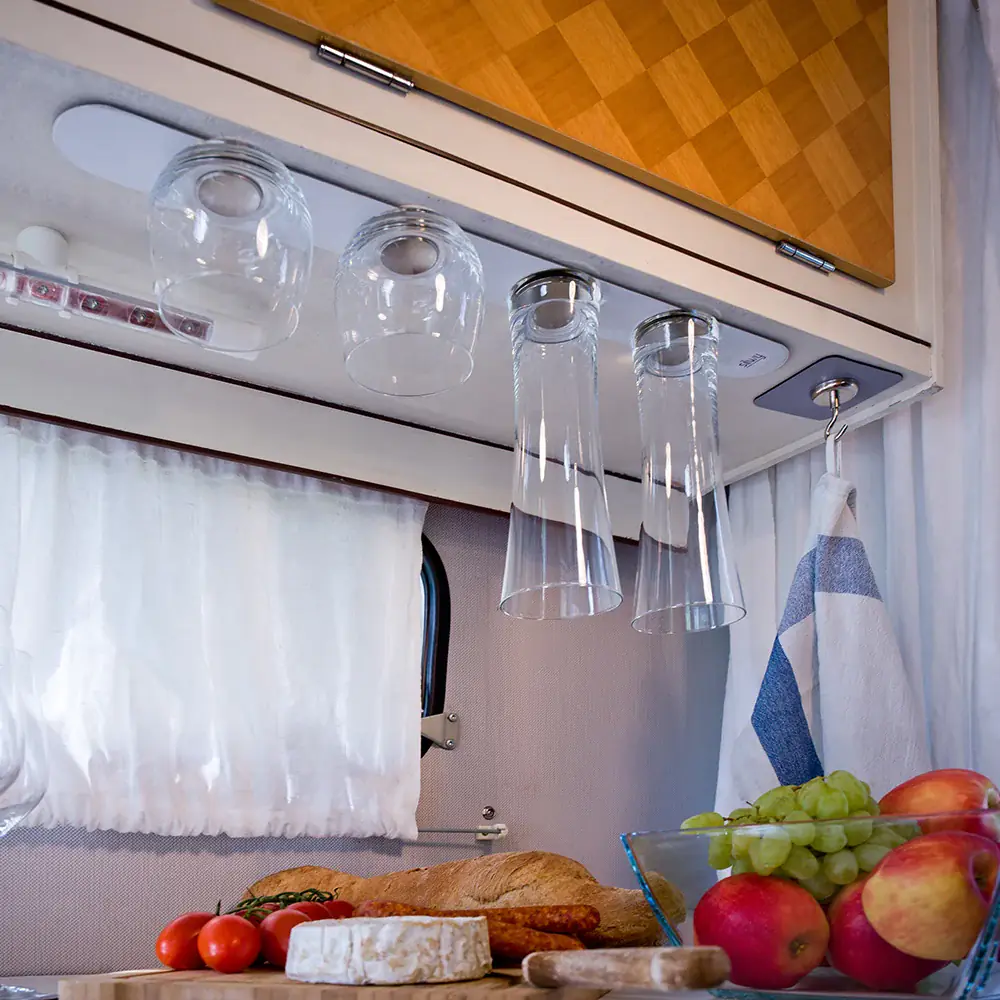 Silwy har også smarte «magnetstriper» som er perfekte å montere i byssa eller andre steder om bord, som gjør at glassene ikke beveger på seg selv når de er stuvet bort. Det lille vi har testet har glassene og systemet fungert overraskende bra.