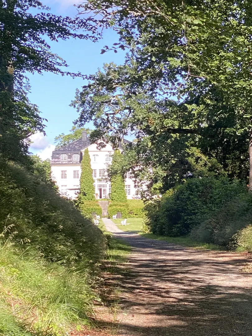 Herregården er en vakker, nostalgisk og storslått bygning som også er kjent for et svært respektabelt kjøkken. Vi fant ut at vi skulle unne oss å føle oss litt blant fiffen denne kvelden og bestilte bord. En rekognoseringstur i området viste at stedet har mer å by på enn gamle, ærverdige bygninger. Her var koselige stier og flott natur – blant annet med en rekke ulike tresorter og store, åpne enger.