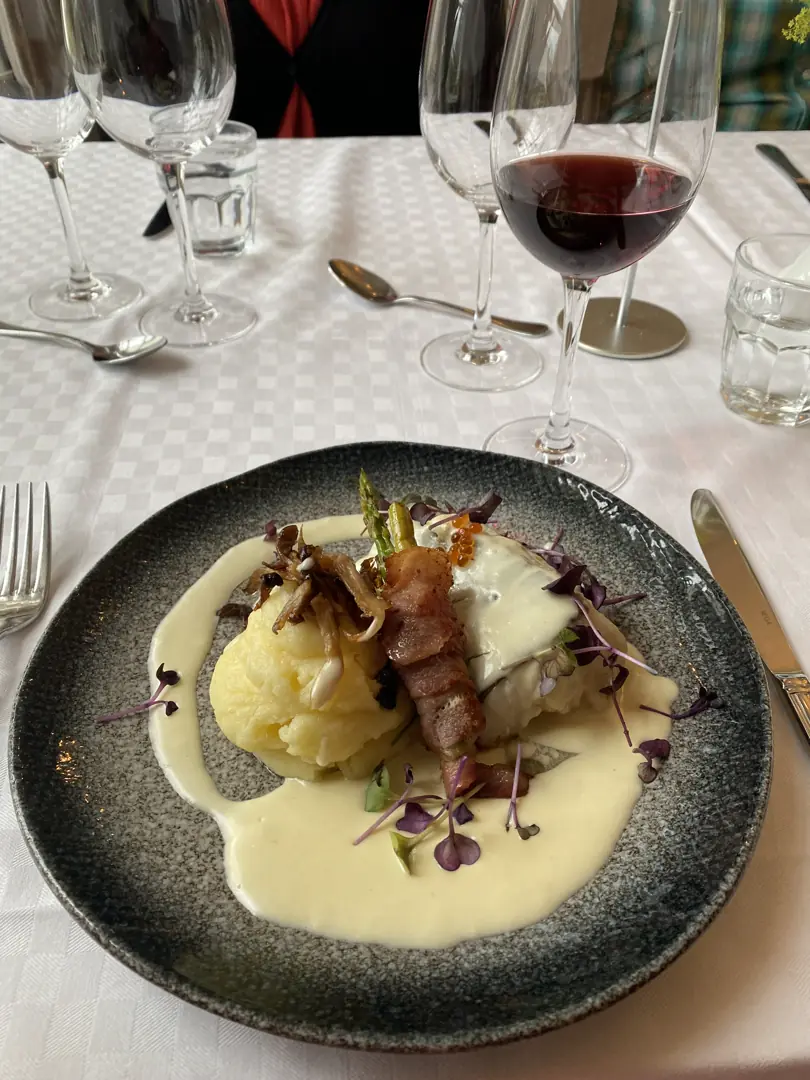 Som på de fleste (kanskje alle) finere restauranter var porsjonene av en slik art at ingen risikerte utfordringene som følger av overspising. Når det er sagt var maten særdeles god, med gode råvarer og godt håndverk komponert sammen til en symfoni av smaker.