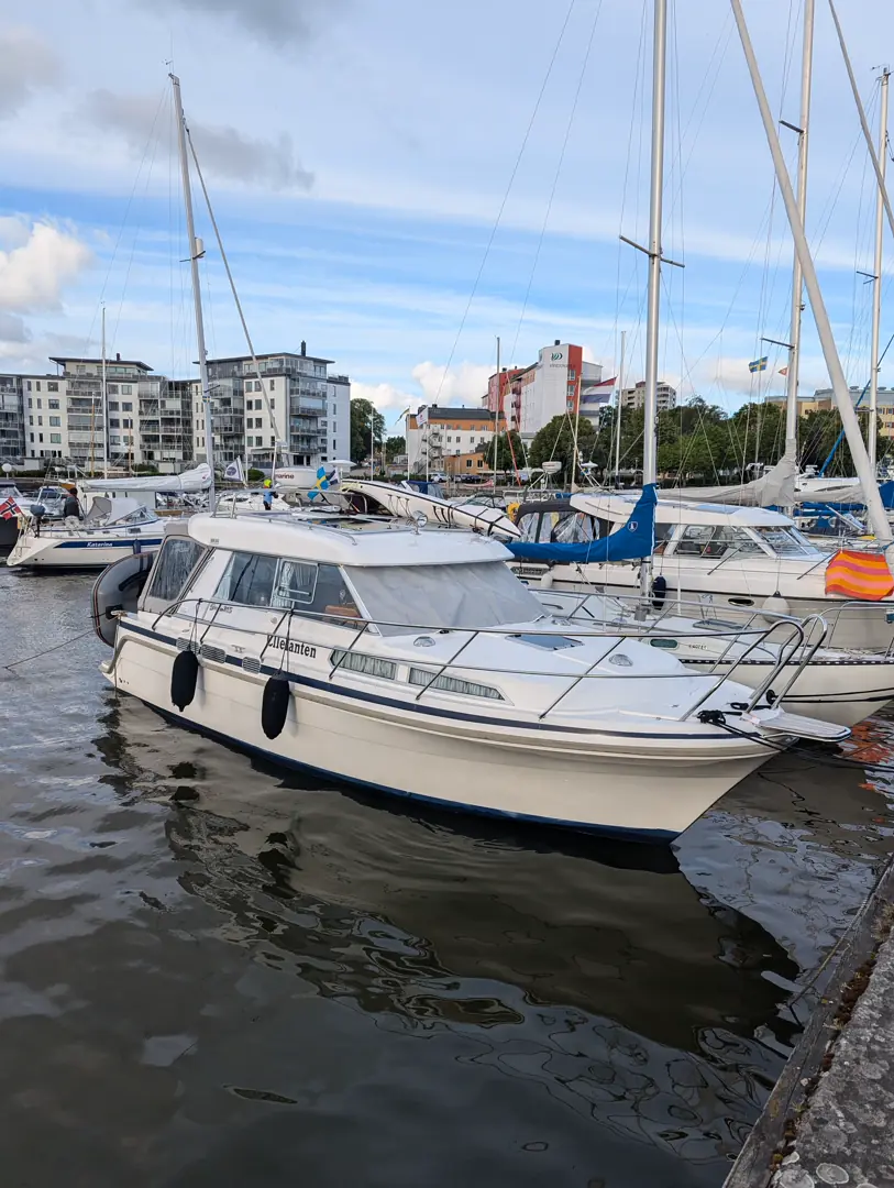 Overfarten forløp helt udramatisk, men mot slutten av turen begynte det å blåse opp og vi fikk en liten smak på hvor lite vind som trenges for å skape rotete sjø. Vel fremme i Vänersborg hadde vinden tiltatt betraktelig, og fra utsiden fortonet gjestehavnen seg som et riktig blåsete og ugjestmildt tilholdssted. Men da vi kom inn i selve havna, tok en solid molo av for utfordrende vind og vi fikk lagt oss til uten problemer.