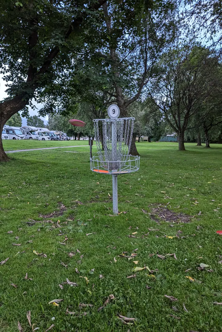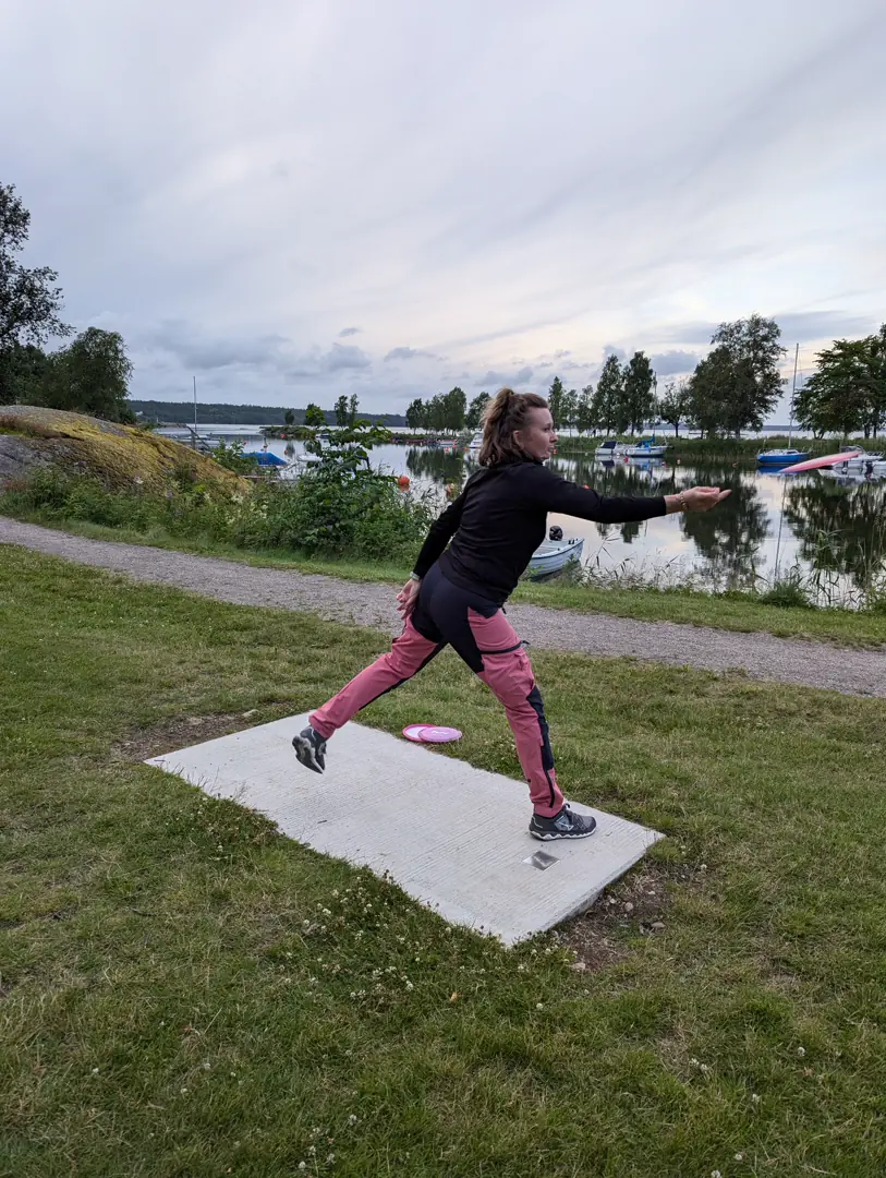 Etter litt rekognosering i området var det tid for å dekke et av områdene i nederste del av Maslows behovspyramide, og reisefølge inntok middagen i hver sin båt. Kveldsaktiviteten denne dagen ble en debut for oss. Vi hadde fått med oss et utvalg frisbee`er hjemmefra og her fantes en discgolf-bane som vi oppsøkte. Dette var noe som slo an hos alle sammen og er en perfekt aktivitet å gjøre på båtferie der alt som puttes inn ved ferielasting av skuta blir gjenstand for vurderingen nytte kontra plass det opptar.