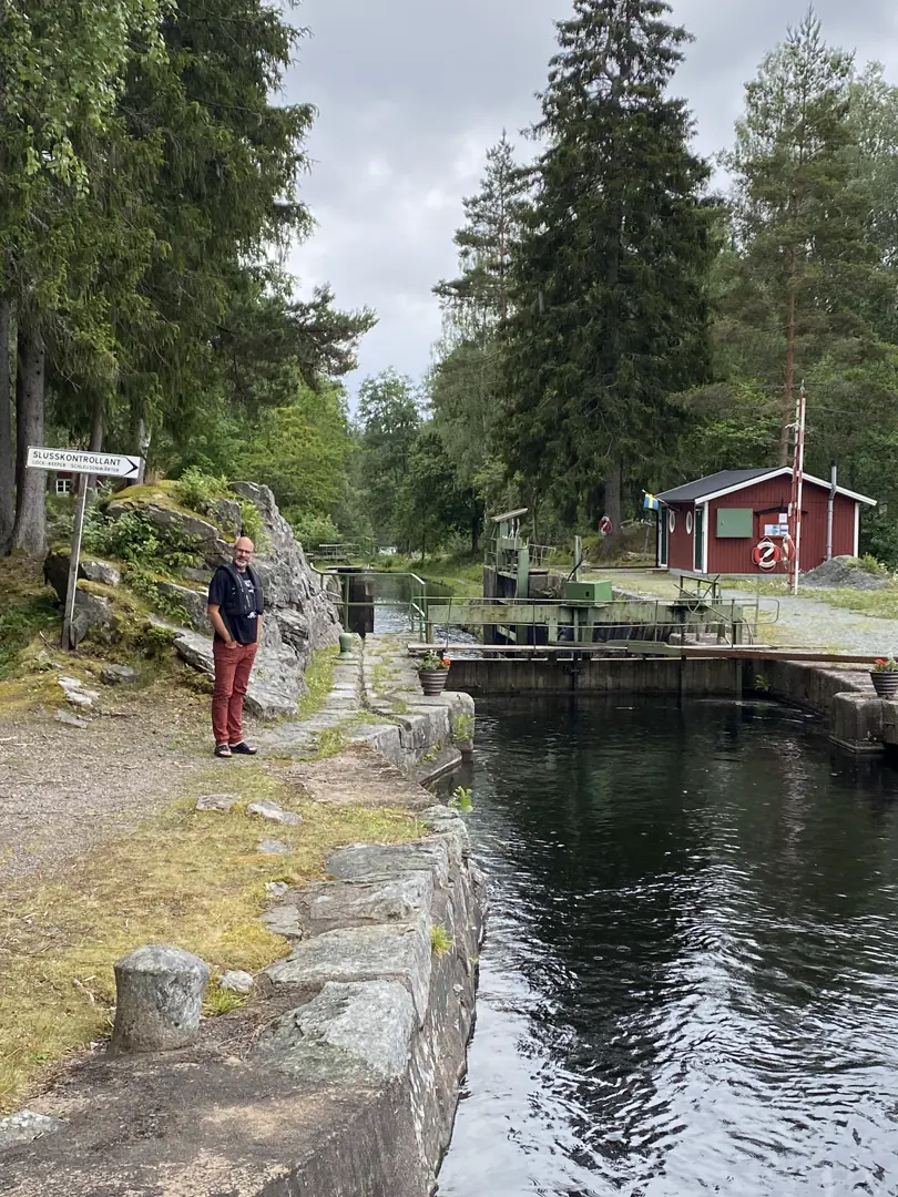 Vi var nå midt inne i det tetteste området med sluser på denne ferden, og hvis marginene var på vår side ville vi komme oss ned til Håverud denne dagen. I så fall skulle 5 sluser, 11 slusekammer og den ikoniske, skremmende og fascinerende akvedukten i Håverud forseres. Dette var en av turens forflytningshøydepunkter. Flatt vann, livet i eco-mode og smale, vakre passasjer mellom slusene gjorde sitt til dette. Da vi i tillegg opplevde en herlig variert bukett med hjelpsomme, pratsomme, artige og alvorlige slusevakter, ble denne turen stjernemerket i den dalslandske minneboka.