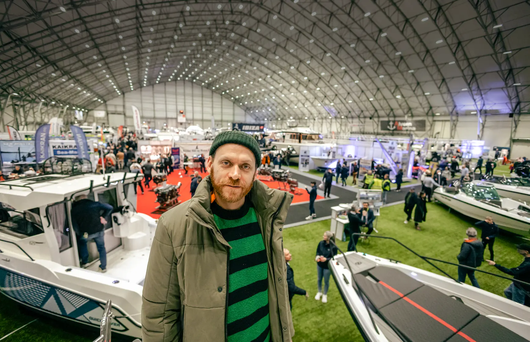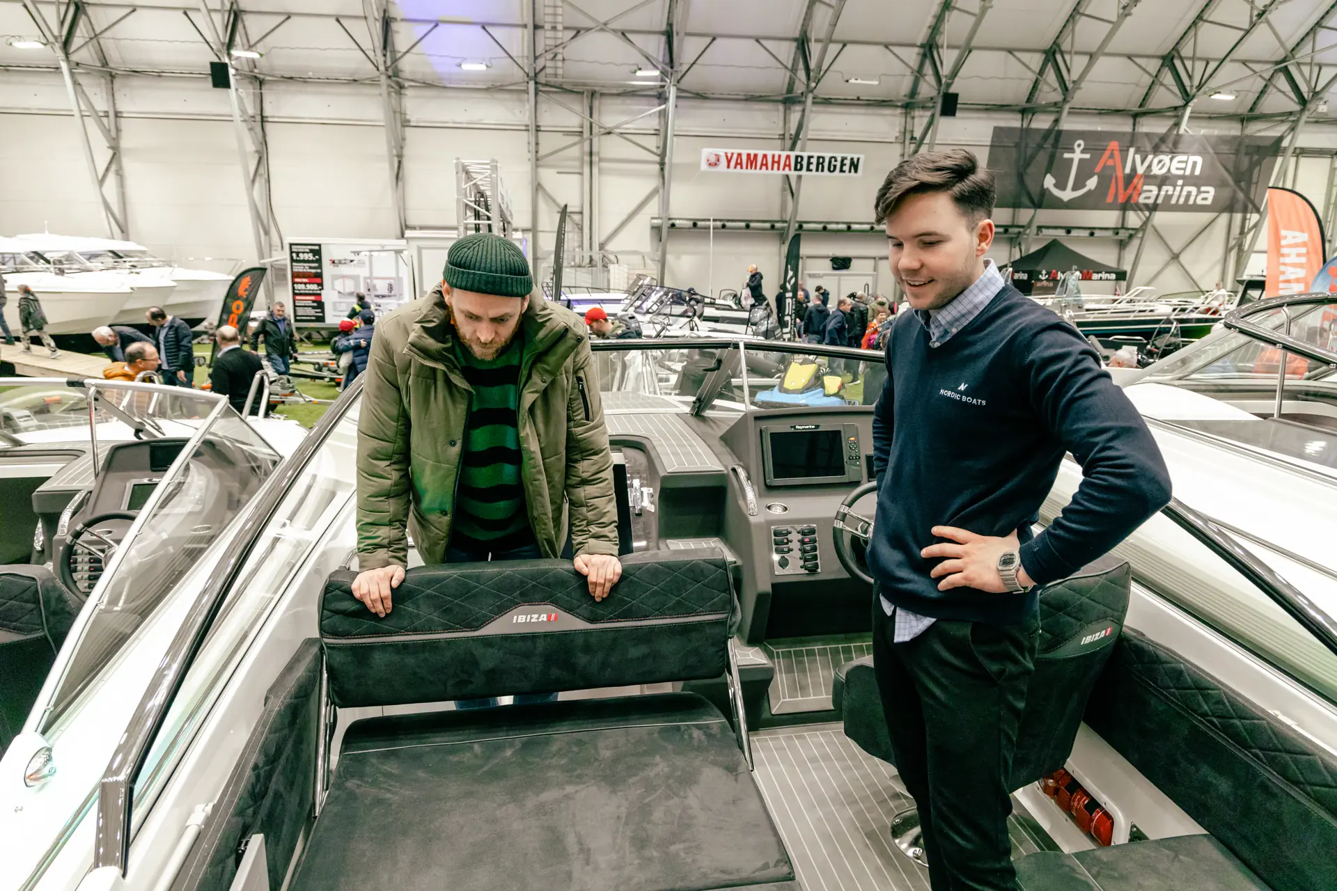 På båtmessen er det noe for enhver, enten man drømmer om ny båt, er på jakt etter produkter til årets båtpuss eller ser etter kajakk eller vannscooter. Båtmessen har vært kansellert de to siste årene på grunn av pandemien. Frank synes derfor det er ekstra kjekt at det ble båtmesse i år. Han går forbi flere av de 47 ulike utstillerne og rett bort til Nordic Boat. En ny båt i sikte. Hans Petter Schøll, produksjonssjef for Skager 660 og selger for Nordic Boats, hilser velkommen. Han har en rekke ulike modeller utstilt og flere båter er allerede solgt.