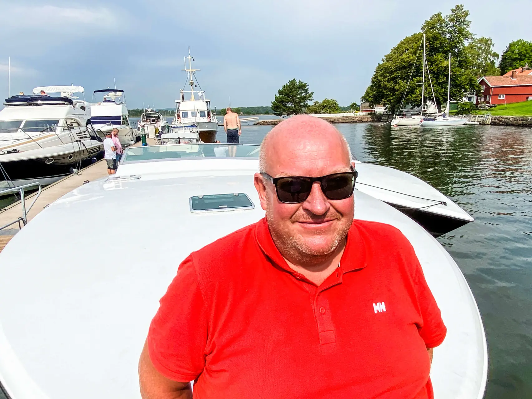 Jeg er «powerboat-fantast», og medlem i Oslo Powerboat klubb, som mest er en vennegjeng med likesinnede som møtes på fjorden. Jeg har også en eldre Fountain 42 med solide v-åttere, men den blir liten ved siden av denne. Originale Magnum er de reneste «tanks» på vannet med voldsom motorkraft og høye hastigheter bygget for røff bruk «offshore». Her ombord klarer vi oss med 2 x 440 hk. Yanmar diesler, som vi har skrudd opp pumpene litt på, og Arneson drev med overflatepropeller, så denne båten gjør faktisk 53 knop med relativt moderat motorisering. Magnum har alltid fasinert meg med de suverene sjøegenskapene, det voldsomme forskipet, bredden, og den gode plassen ombord. En enorm daycruiser med masse uteplass, men også alle fasiliteter under dekk.