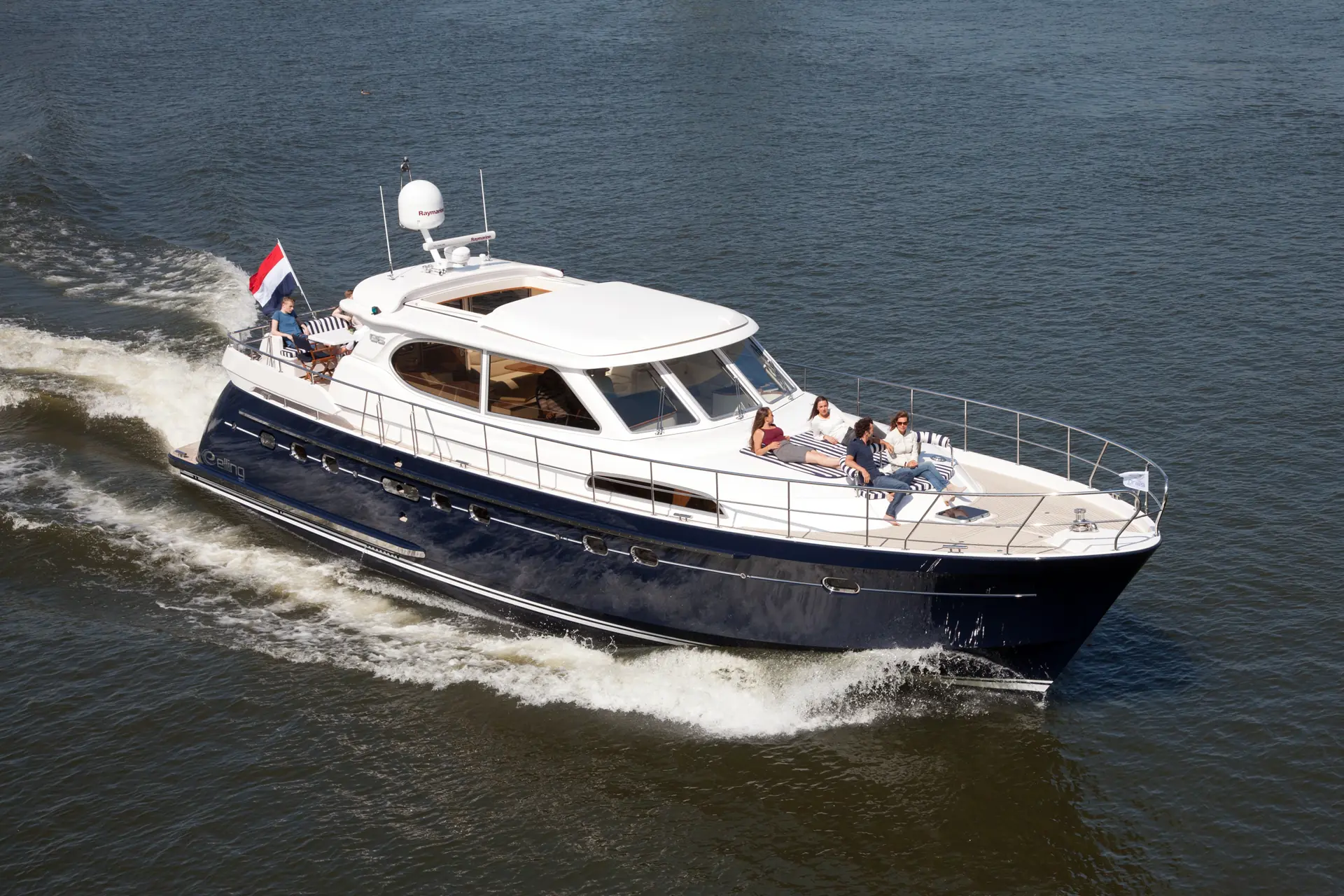 Allerede før dette gikk Anton og særlig forhandleren i Russland, svanger med en storesøster. En båt som skulle tilfredsstille kresne båteiere som ønsker mer volum og komfort, men med samme konsept. Og nettopp takket være at en russer var med å finansiere byggingen, befinner vi oss i dag på første testtur med Ellings nye flaggskip. Båten er helt lik sine søstre, og på avstand ser du nesten ikke forskjell. Kommer du innpå derimot, ser du hvilket skip, og linjer, denne båten har fått.