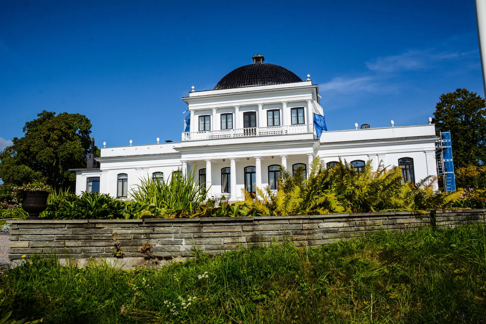 Før avreise tar vi turen til Ulefos Hovedgaard, en spasertur på femten minutter fra gjestehavna. Ulefos Hovedgaard regnes for å være empiretidens viktigste arkitektoniske verk i Norge, og ble bygget av godseier Niels Aall for å være sommerresidens for familien. Pengene til byggingen kom fra familien Aalls handelshus i Porsgrunn, der de gjennom tre generasjoner hadde bygget seg til full kontroll på markedet for trelasteksport. Huset sto ferdig i 1807 og her tilbyr Telemark Museum både visning innendørs og en herskapelig hagevandring i det imponerende anlegget. Bare det å oppleve hagen og mimre tilbake til de majestetiske tidene på 1800-tallet er vel verdt turen opp hit til Ulefoss sitt tak.