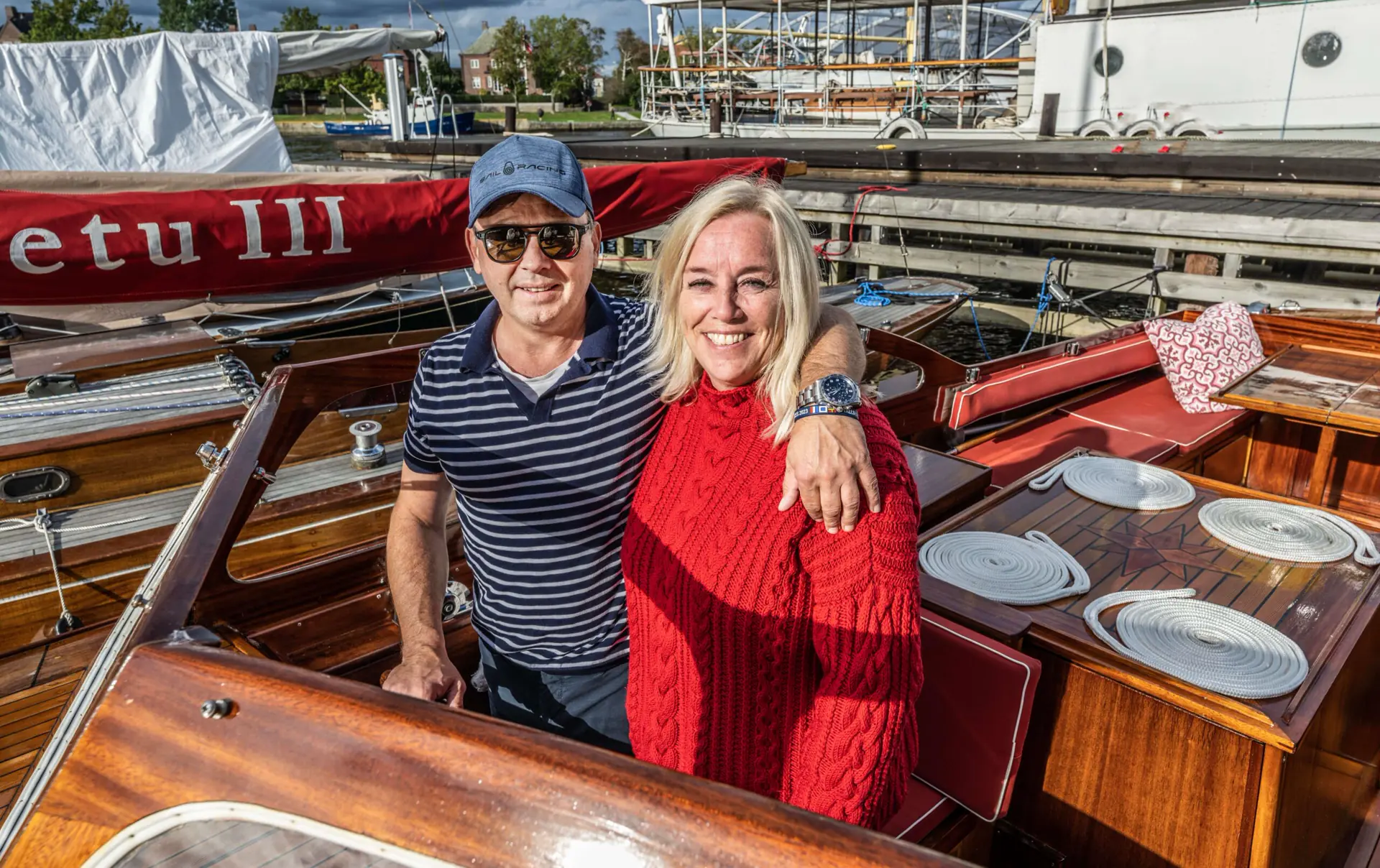 Båtens Verden treffer dagens eiere en vakker sensommerkveld i hjemmehavna på Isegran. Knut har ikke mer enn fått trukket pusten etter jobben som prosjektleder for Fredrikstad kommune i forbindelse med årets Tall Ships Races i juli, og medgir at denne båtsesongen nok ble noe kortere enn de fire tidligere.