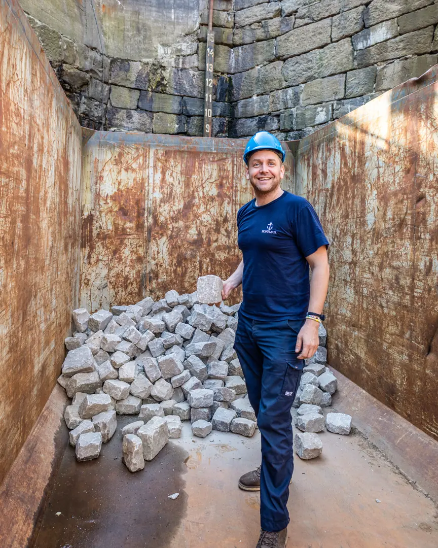 – Hahaha, det går sikkert an spørre KI om tips underveis, men det har ikke vi gjort. Vi har heller sett bakover mot sjøfartstradisjoner og gjort arbeidet på gamlemåten, smiler den joviale driftslederen med luen godt trukket ned over ørene.