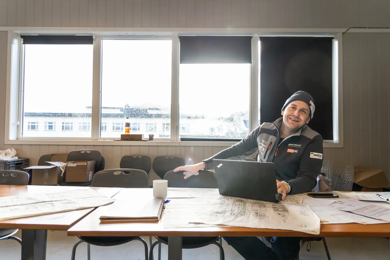 I andre etasje i et gammelt lagerbygg ikke langt unna sitter driftsleder for verkstedoppholdet, Sigvard Madsen. Det har vært mye å ta stilling til.