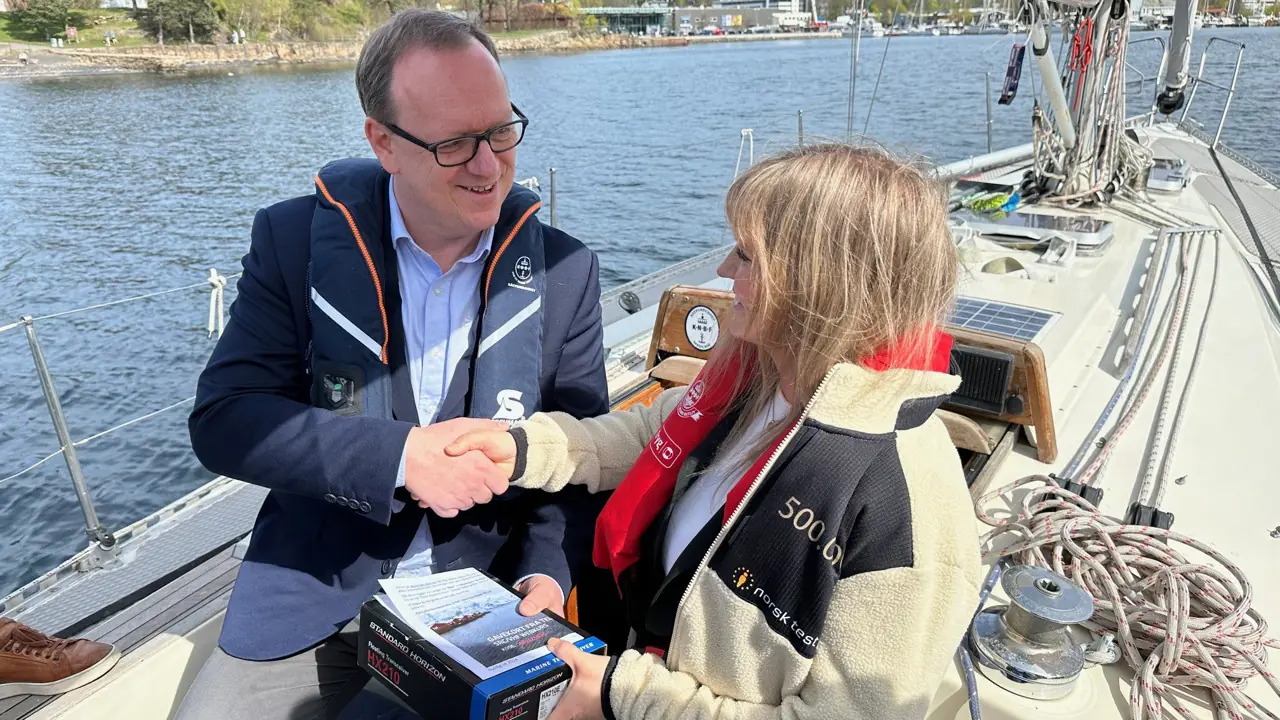 Sammen med fungerende sjøfartsdirektør Alf Tore Sørheim, fikk ministeren æren av å dele ut båtførerbevis nummer 500.000 til Anita Strauman.