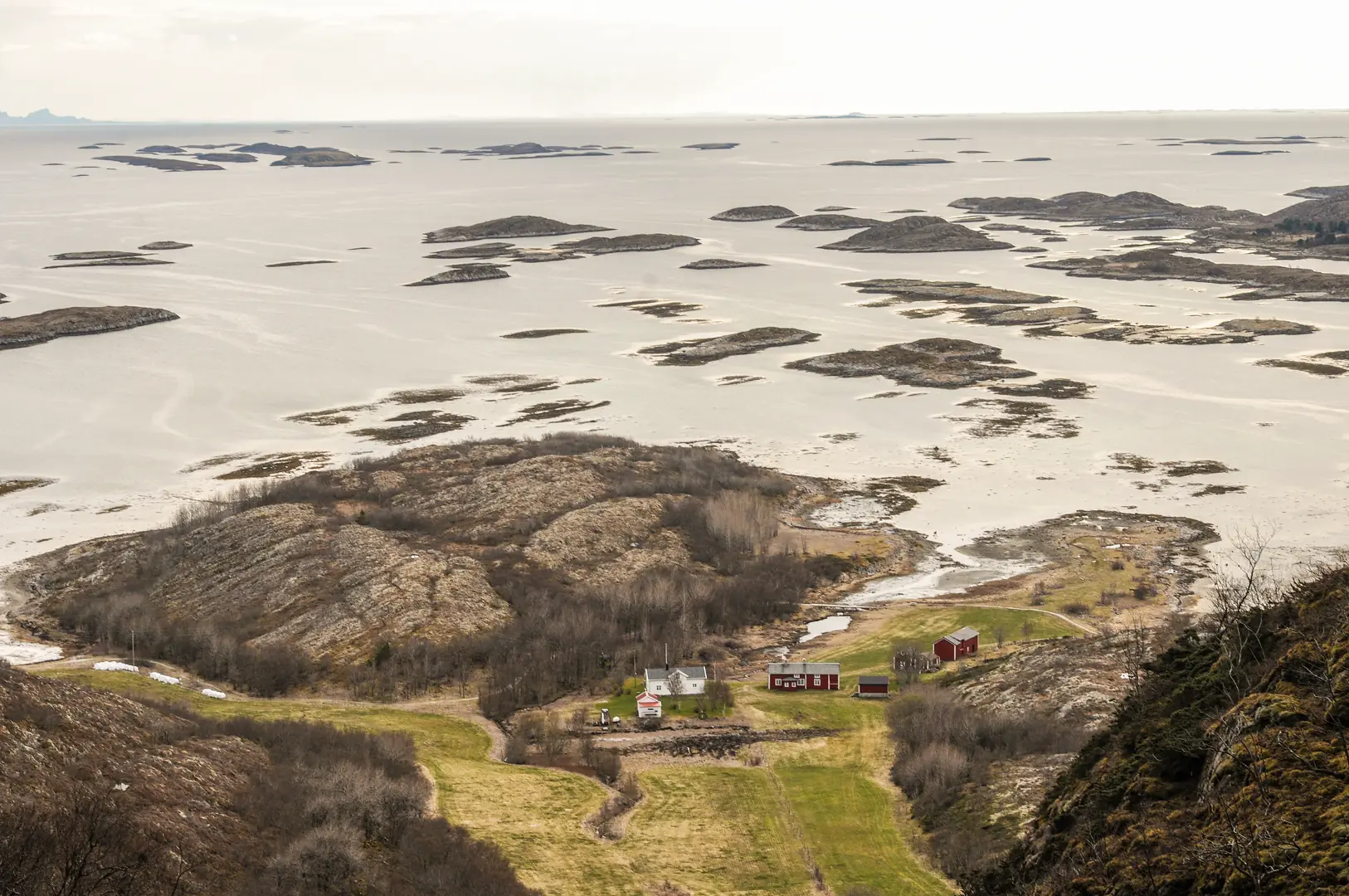 Langt senere, i løpet av de siste 2,5 millioner år, kom flere istider og formet landskapet ytterligere. Isbreene skurte fjellet, gravde ut dype daler og fjorder, og etterlot avrundede koller og skjær. Under siste istid var innlandsisen opptil 3 000 meter tykk og presset landet ned. Da isen smeltet for omtrent 10 000 år siden, begynte landet å heve seg igjen. Det var da øyene, holmene og skjærene vi kjenner i dag, steg frem av havet.