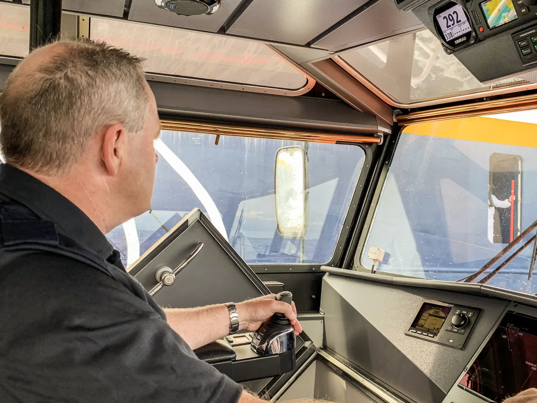 Det pøsregner hele turen til Arendal. Det er først gåturen fra parkeringshuset som gjør meg klissvåt, men et tørt håndkle har de klart idet jeg entrer losskøyta. «Velkommen om bord, vi har god tid til å tørke deg». Smilet sitter løst hos de gode kollegene i de nye pilotstolene.
