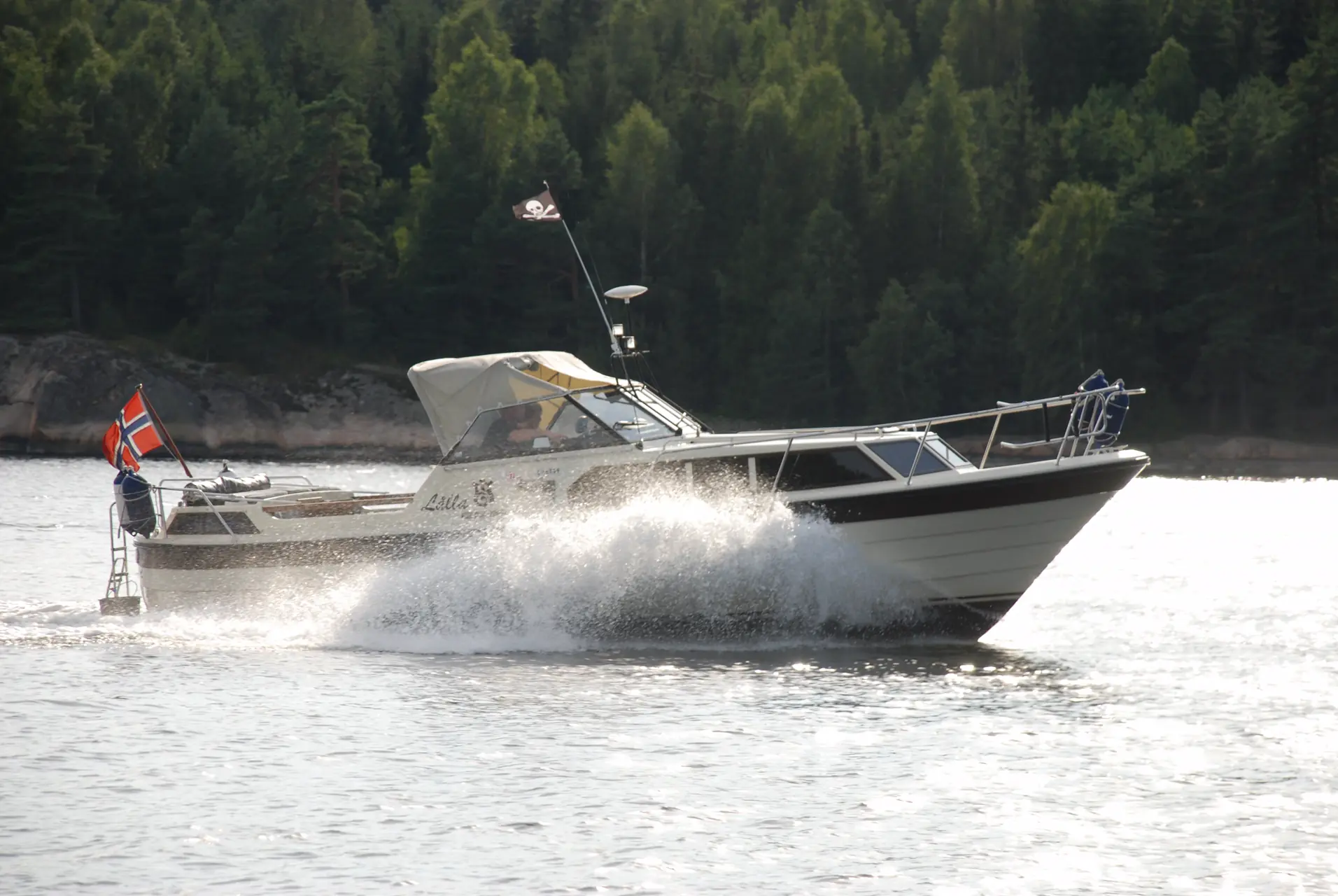 Ser man bort fra spruten, går skroget godt i sjøen. Man må imidlertid være forberedt på litt rulling i sidesjø, mens kursstabiliteten er god så lenge man ikke kjører over 18 knop. Med Yanmar-motoren på 135 hk og lite vekt ombord kan man få båten opp i 20 knop. Skroget har da løftet seg så mye ut av vannet at det må begynne å balansere på kjølen. Men det er umulig, og båten blir derfor i ekstrem grad påvirket av rorutslag og vektforskyvninger om-bord.