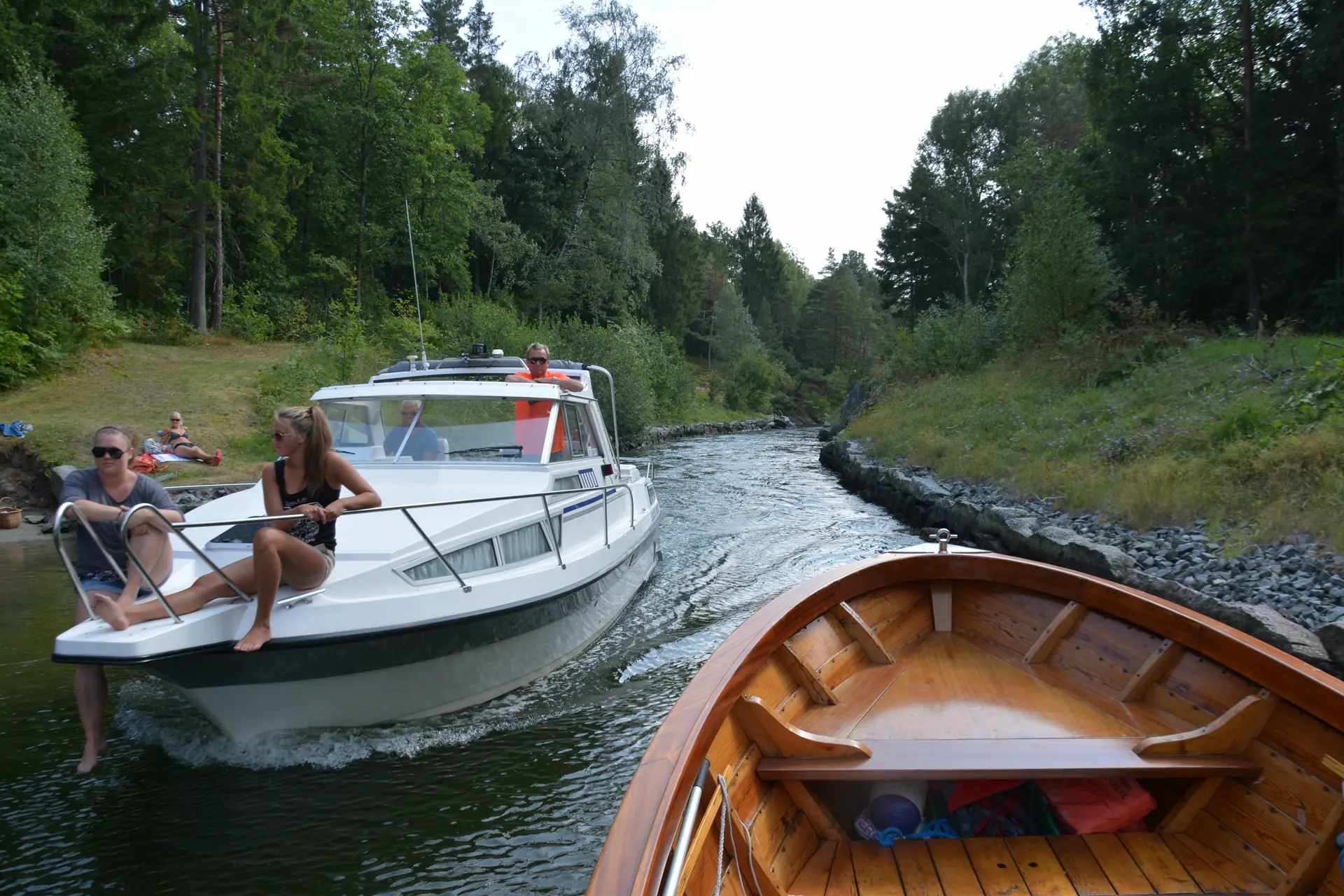 Vi fikk oppleve kanalen i perlevær med Ludvigsens tresnekke på 24 fot - med reker, iskald drikke og dunk-dunk lyd fra Saab-motoren. En sterkere følelse av sommer er det nok vanskelig å finne selv langs Sørlandskysten - og her er det dessuten lett å finne roen.