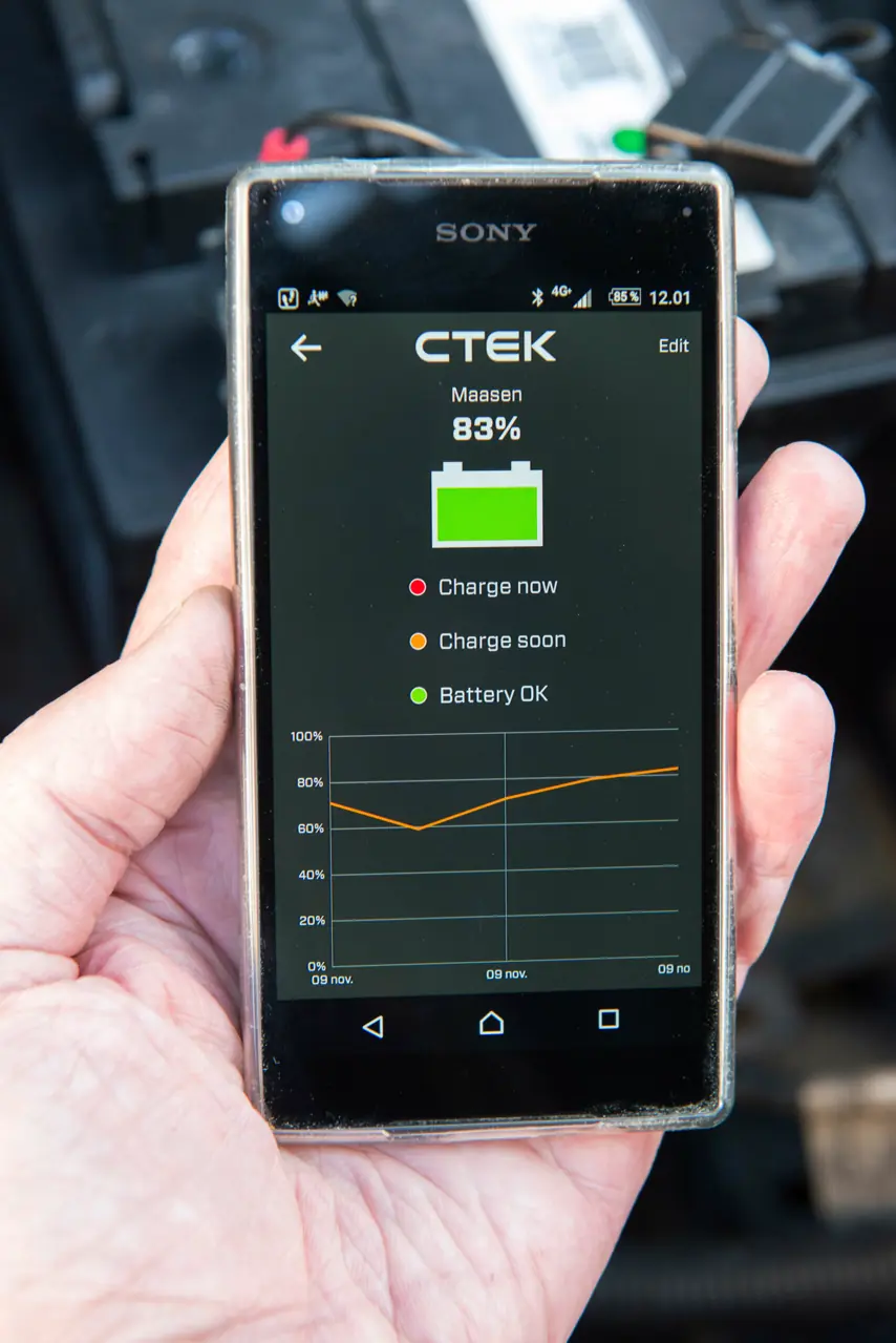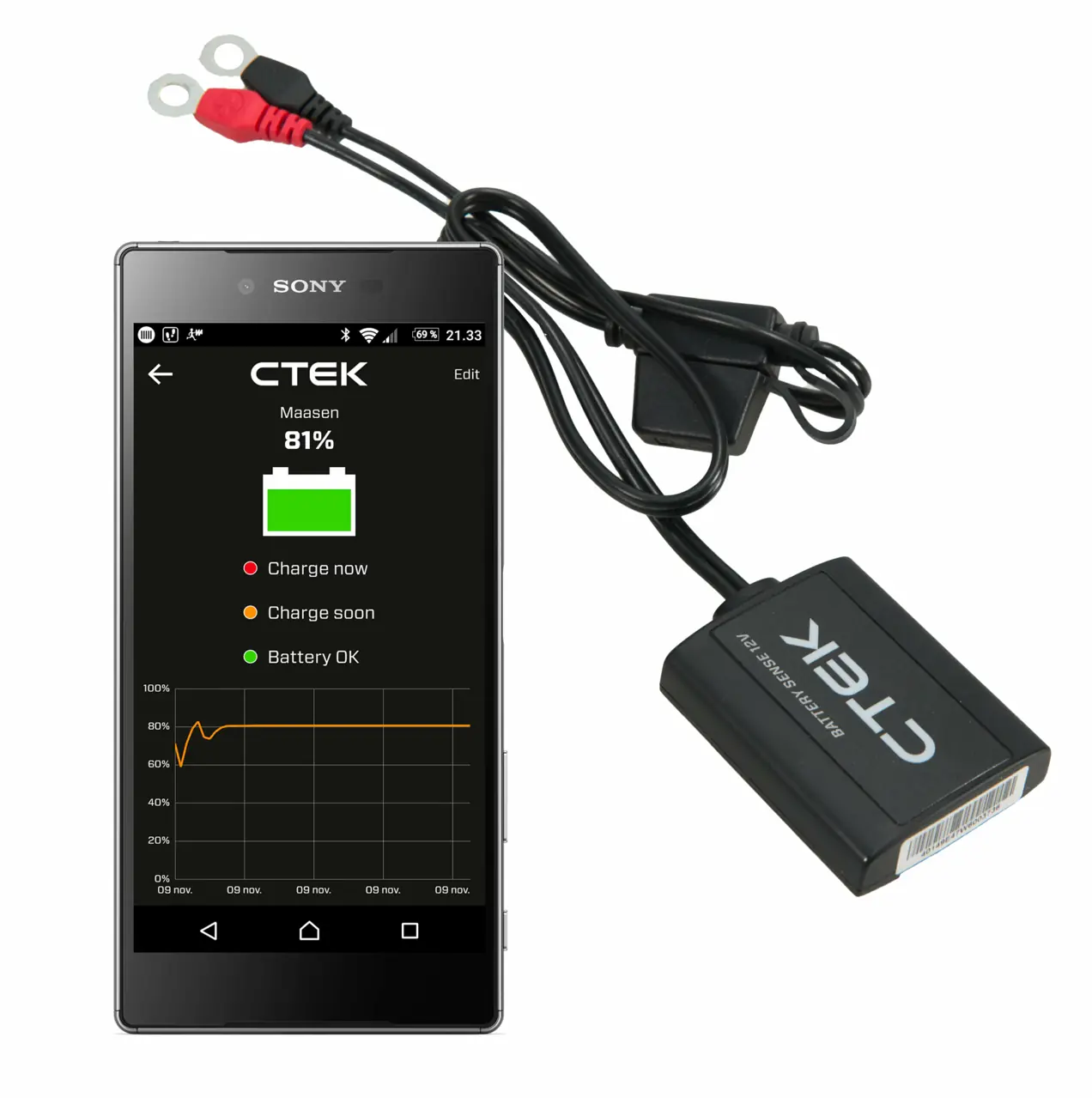 Batteriføleren fra Ctek kan brukes på alle 12 volt batterier, fra 4,5 Ah og opp til 200 Ah. Det vil si at den kan brukes både i bil, campingvogner, bobiler og båter. Installasjonen er så enkel at absolutt alle kan få det til. Hele jobben er gjort unna på knappe 10 minutter. På batteriet monteres en føler som sender informasjon om batteriet via Bluetooth til din smarttelefon – enten det er Android eller iPhone. Battery Sense er heller ikke særlig dyr, cirka 600 kroner.
