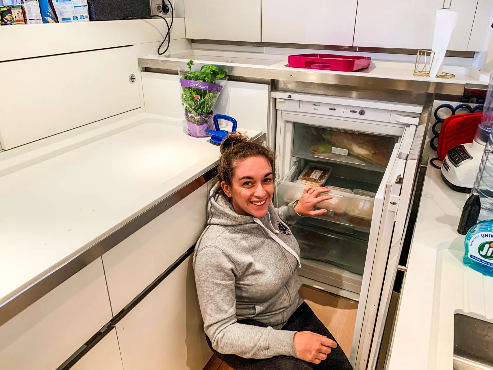 «Det var utrolig mye renhold. Sanden blåste fra Sahara, var rød og la seg overalt. Noen dager måtte jeg bare begynne forfra igjen. Båten er jo 25 meter lang! Ellers var jeg aldri redd. Alltid mye folk i marinaen, og et hyggelig svensk seilerpar skulle overvintre i sin båt, og de tok seg av meg».