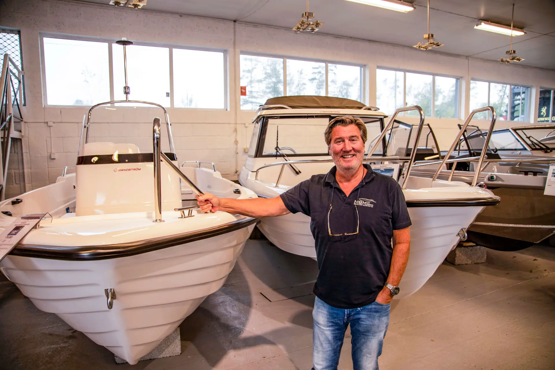 I dag driver han Moss Båt og Motor sammen med sønnen Mats – og har to kollegaer på salg og verksted. Far og sønn har lang erfaring i båtbransjen – ja til sammen over tretti år. – Vi må være hands on hele tiden. Punktlighet og service er helt sentralt når du driver båtbutikk, så her må alle trå til der det trengs. Vi jobber med det lokale markedet og mot hytteeierne, både her i Mosseregionen og mot Son og Drøbak. Sesongen er kort, så vi må levere til tiden og ikke 14 dager senere enn avtalt. Derfor har vi heller ikke mål om å bli størst, forteller han.
