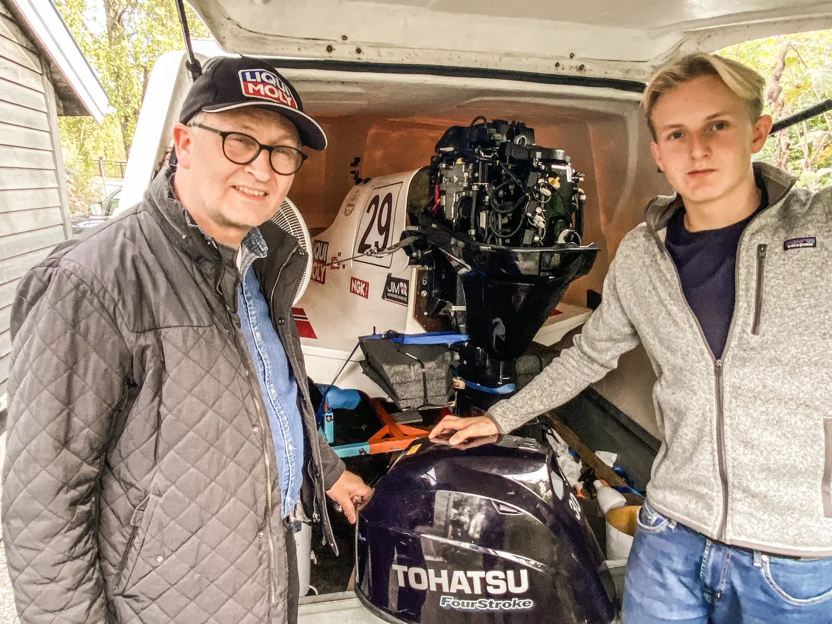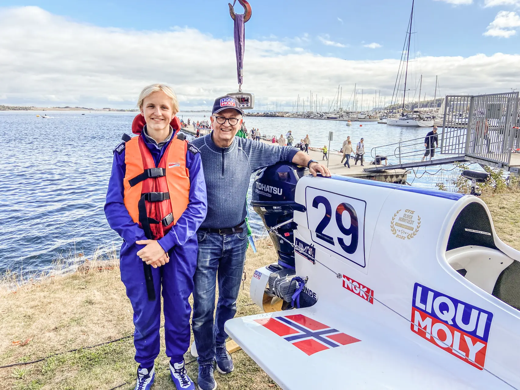 Så etter to døtre som ikke fant båtracingen så interessant, kom sønnen Oliver i 2006, og det var duket for en ny karriere. I Drammen i 2018 fikk Oliver prøve en V15-båt, men ble ikke umiddelbart frelst. Han syntes det ristet, hoppet og spratt litt vel mye. Det var litt skummelt, sier Oliver, men samtidig gøy med farten, så jeg fikk raskt tenning på sporten.
